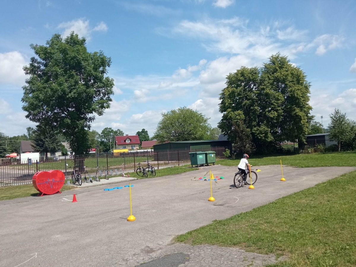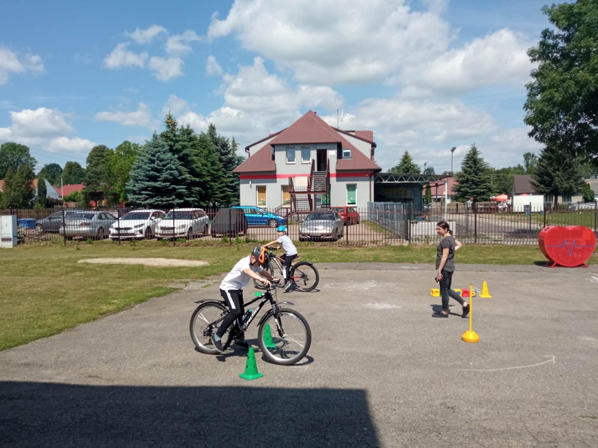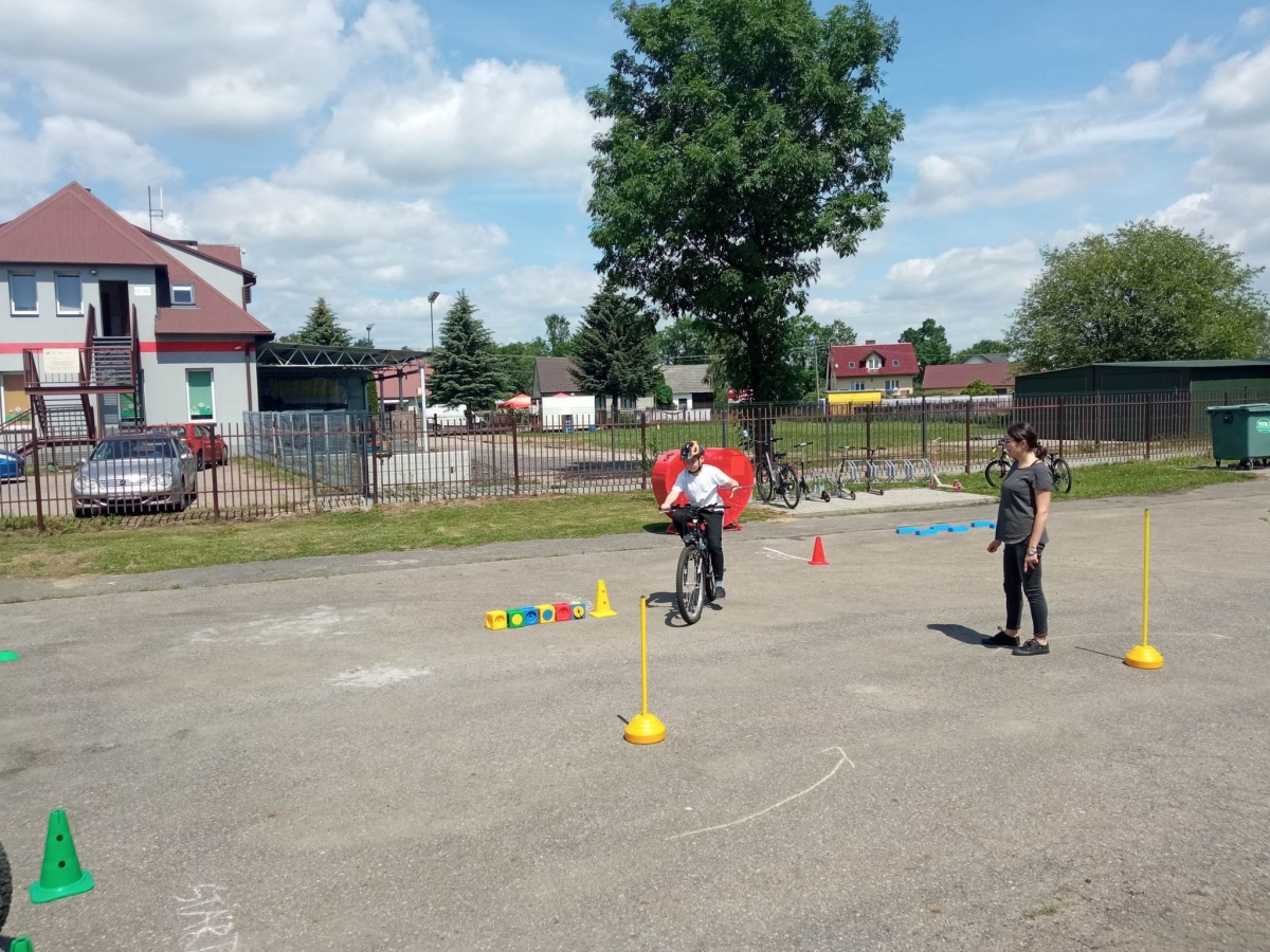 W części praktycznej uczniowie wykazali się umiejętnością jazdy na rowerze na zaplanowanym torze jazdy z zastosowaniem przepisów ruchu drogowego.
