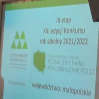 Reprezentacja naszej szkoły w składzie Kamil Gruca z kl. VII oraz Daniel Sobesto i Eryk Żmudka z kl. VIII wzięła udział w etapie parkowym Konkursu Poznajemy Parki Krajobrazowe. Celem konkursu jest zarówno zdobycie i pogłębianie wiedzy na temat polskich parków krajobrazowych i innych zagadnień z dziedziny ekologii, ochrony przyrody, ochrony środowiska, jak również kształtowanie świadomości oraz rozbudzanie zamiłowania do świata przyrody.