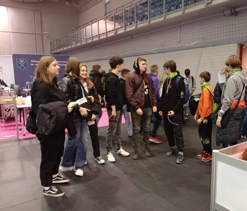 Uczniowie z klasy VII i VIII, stojąc przed wyborem szkoły ponadpodstawowej mają możliwość zapoznania się z ofertą edukacyjną szkół. Podczas tego wydarzenia młodzi ludzie mogli się zapoznać z ofertą szkół branżowych z Małopolski, ale także zobaczyć interaktywne prezentacje zawodów z różnych branż, porozmawiać ze starszymi kolegami kształcącymi się w danym zawodzie.