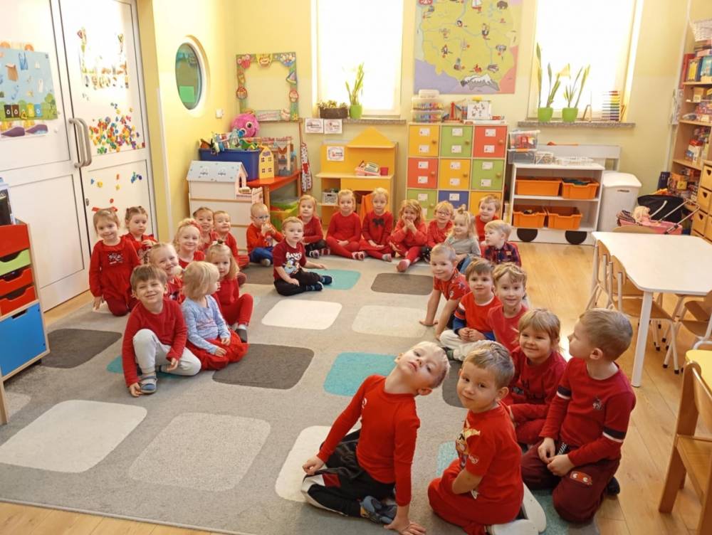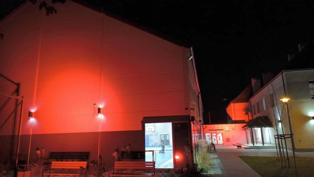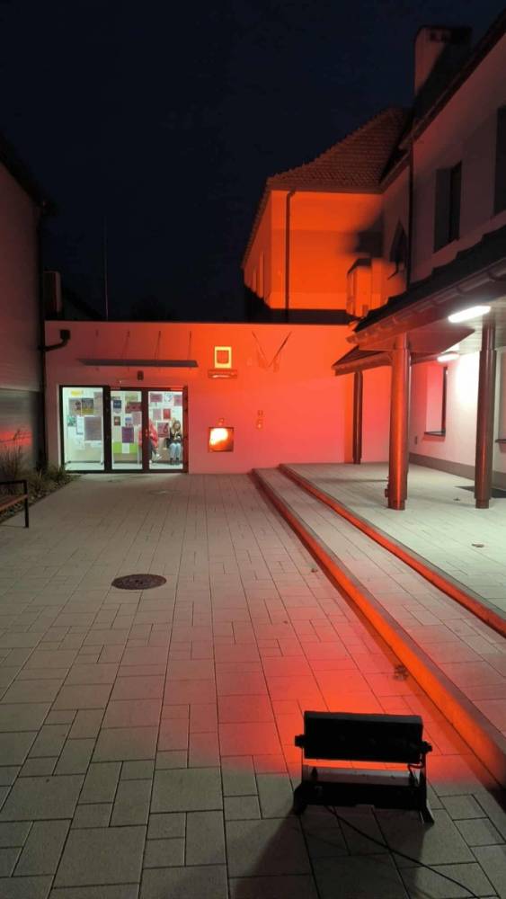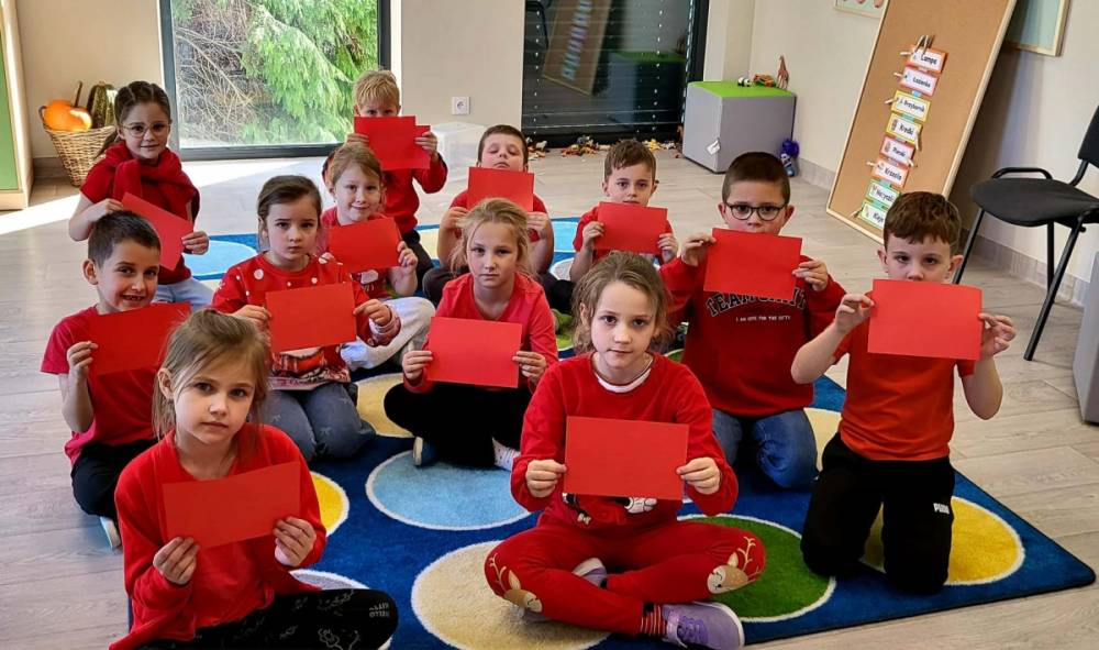 Kulminacyjnym momentem dnia było podświetlenie budynku szkoły na czerwono. W ten sposób nasza placówka stała się częścią ogólnopolskiej sieci miejsc, które tego dnia rozświetliły się w geście wsparcia dla dzieci doświadczających przemocy.