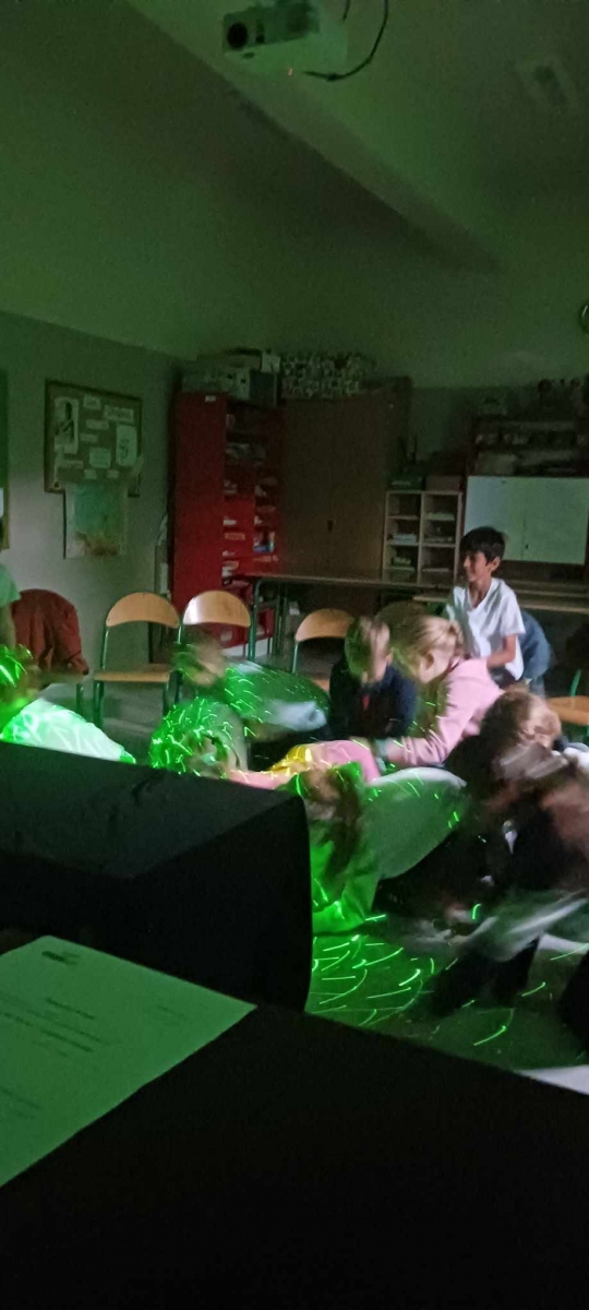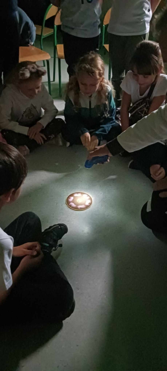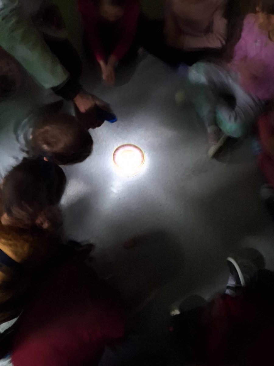 Dzieci podczas ćwiczeń i eksperymentów poznawały różne zjawiska fizyczne związane ze światłem: odbicie światła przez folię dyfrakcyjną – zamiana światła białego w kolorowe, zmiana kilku kolorów na jeden za pomocą krążka barw Newtona, działanie pryzmatu. Dzieci dowiedziały się, jak niewyobrażalną odległość pokonuje światła w ciągu jednej sekundy, obiegając dookoła Ziemię aż osiem razy.