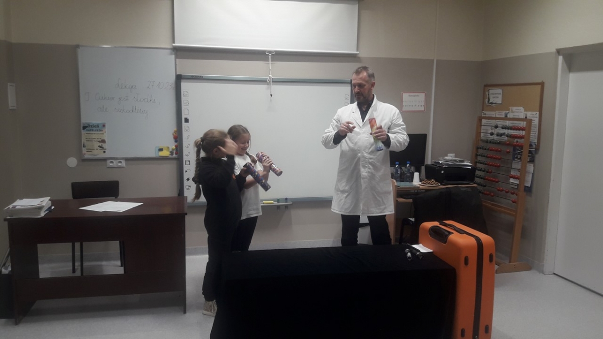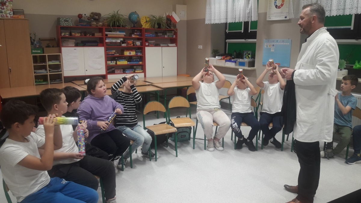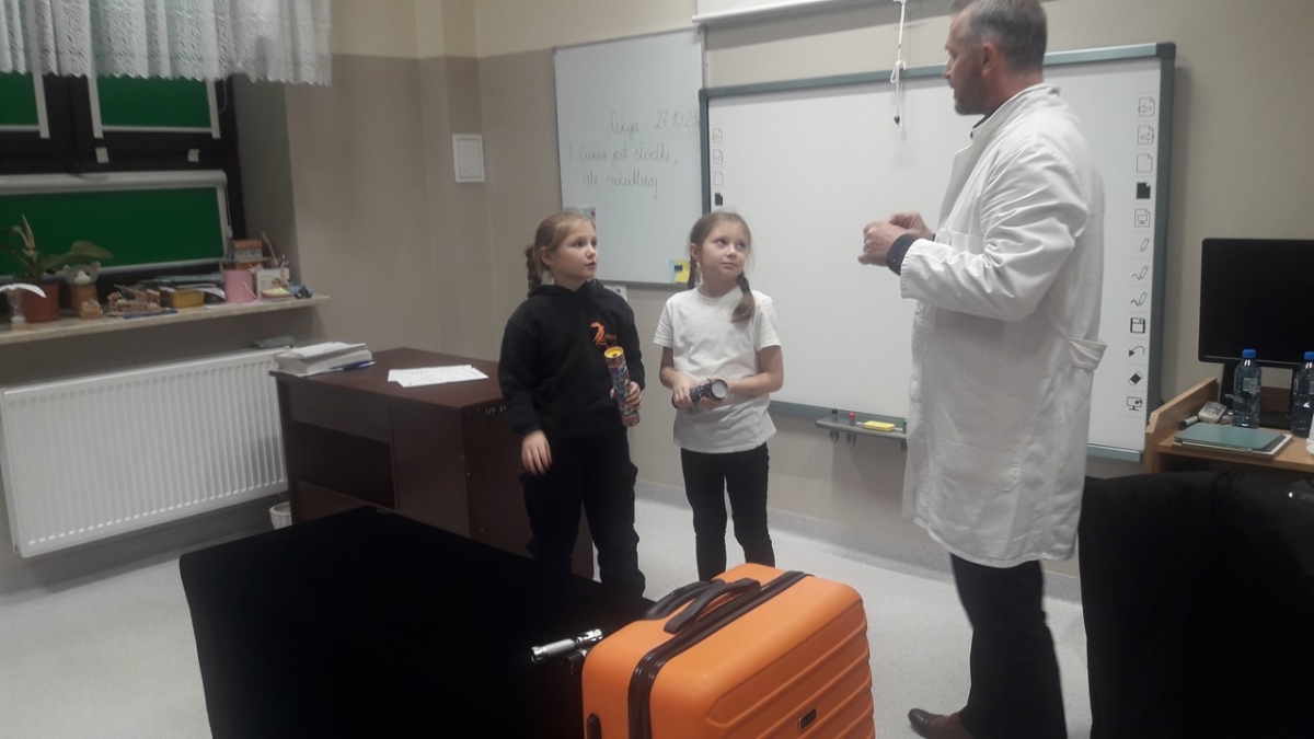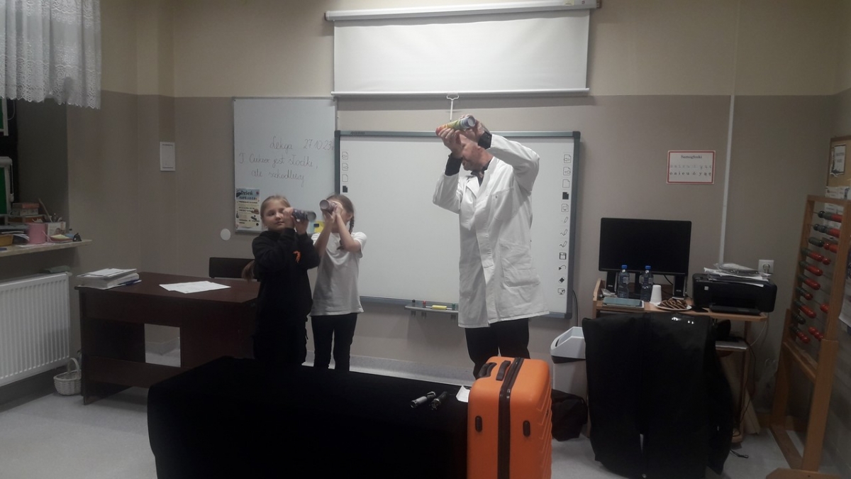 Trzymając w ręku kalejdoskop, uczniowie próbowali samodzielnie wyjaśnić zasadę działania tego niezwykłego przedmiotu. Nie mniejsze zainteresowanie wzbudziło działanie lasera, tak ważnego w wielu dziedzinach życia człowieka, a jednocześnie bardzo niebezpiecznego urządzenia, gdy używa się go niewłaściwie.