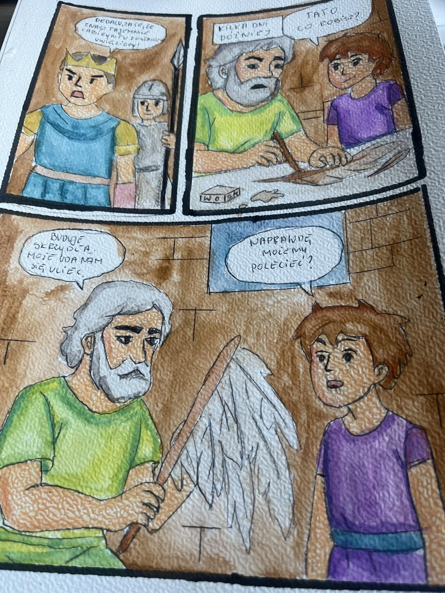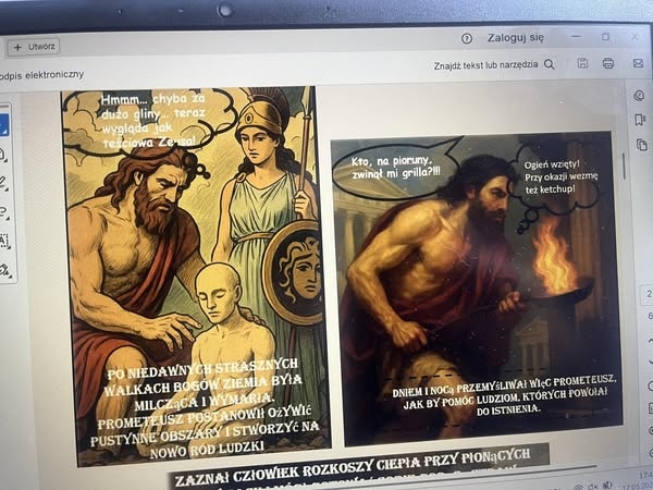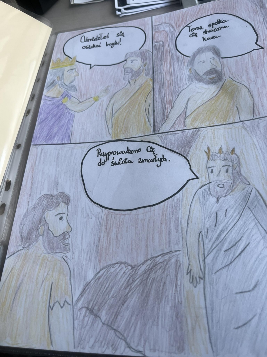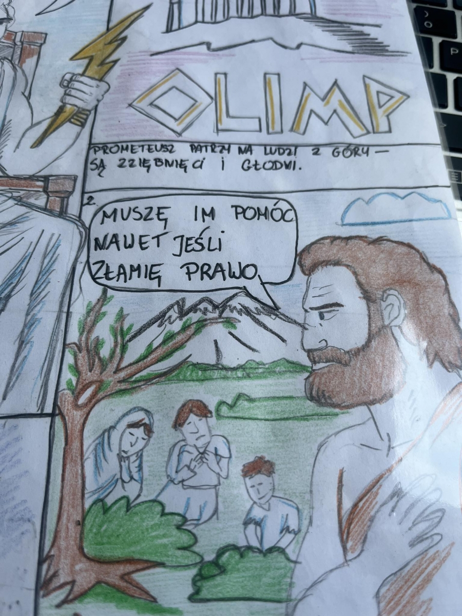 Uczestnicy Konkursu Gminnego utrwalili wiedzę na temat mitów i popularyzowali teksty starożytne w formie komiksu. Prace, kolorowe i wykonane w formie książeczek, przygotowane zostały tradycyjnie w wersji papierowej, a także na komputerze.