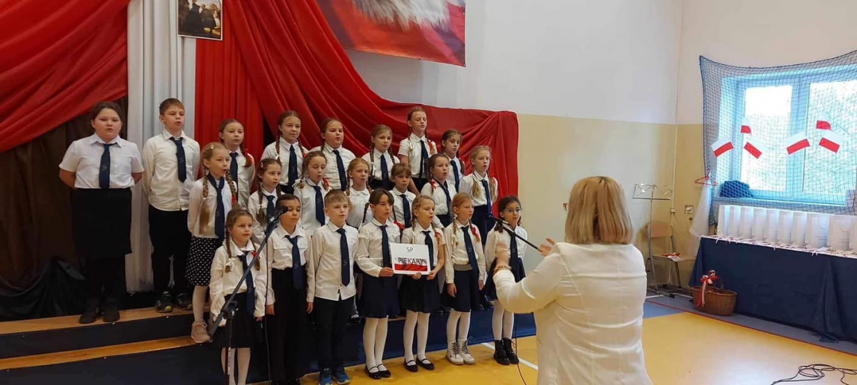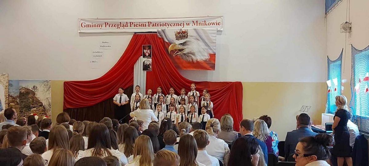 Chór naszej szkoły złożony z uczniów klas młodszych uczestniczył w Gminnym Przeglądzie Pieśni Patriotycznych w Mnikowie. Po uroczystym powitaniu i odśpiewaniu przez zgromadzonych hymnu państwowego rozpoczęły się prezentacje muzyczne uczestników szkół z gminy. Nasi uczniowie zaśpiewali dwie piosenki: „Piechota" i „Zachwyca nas Polska".