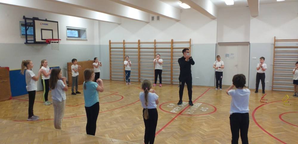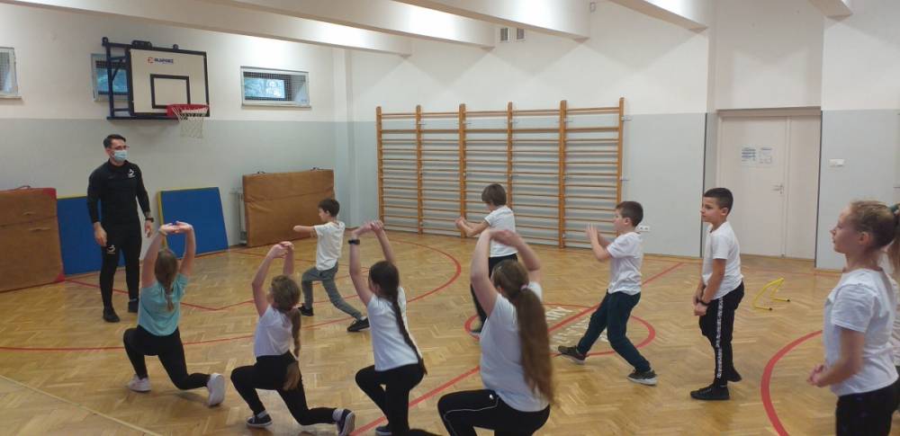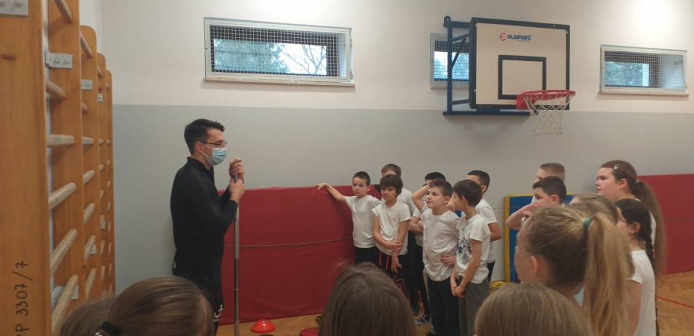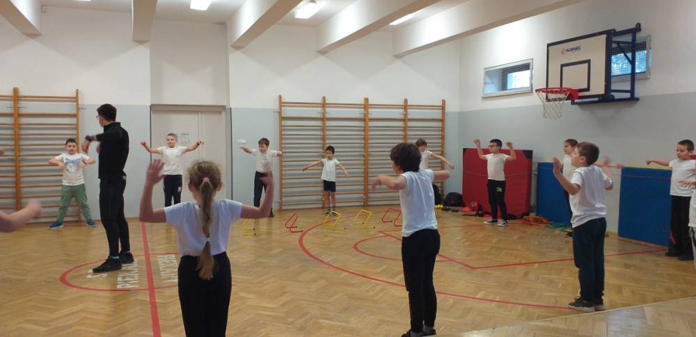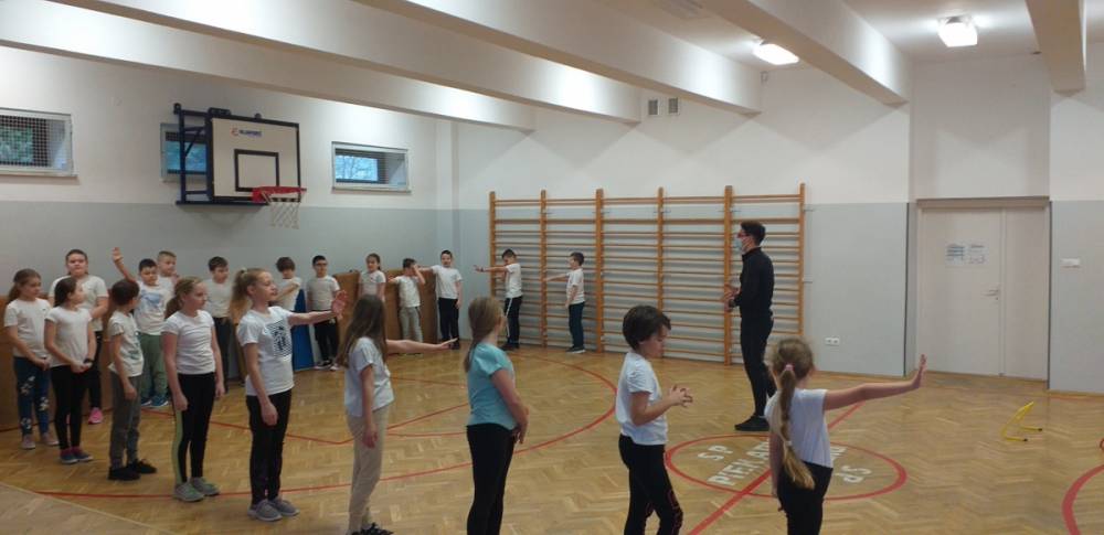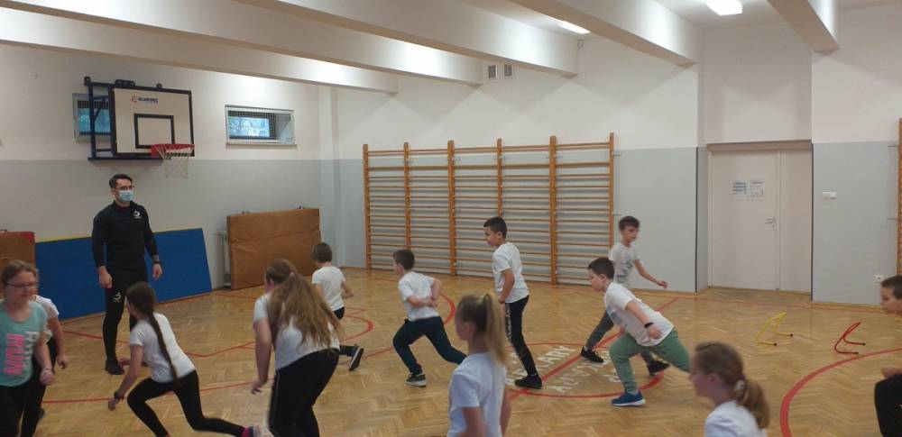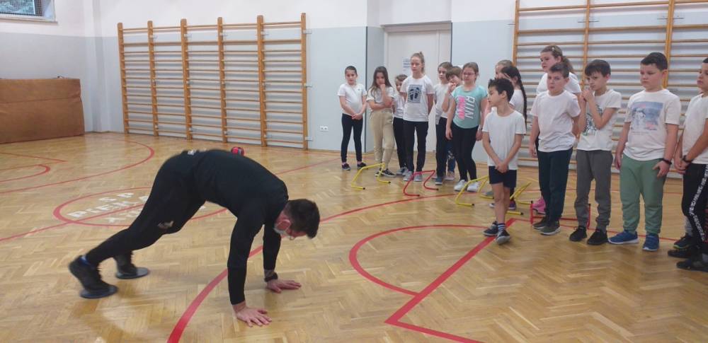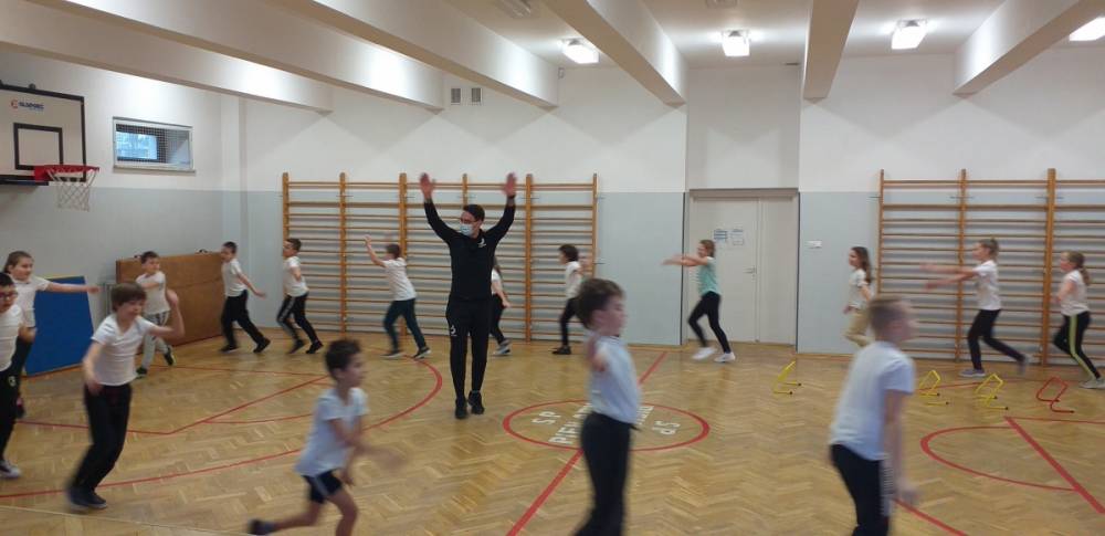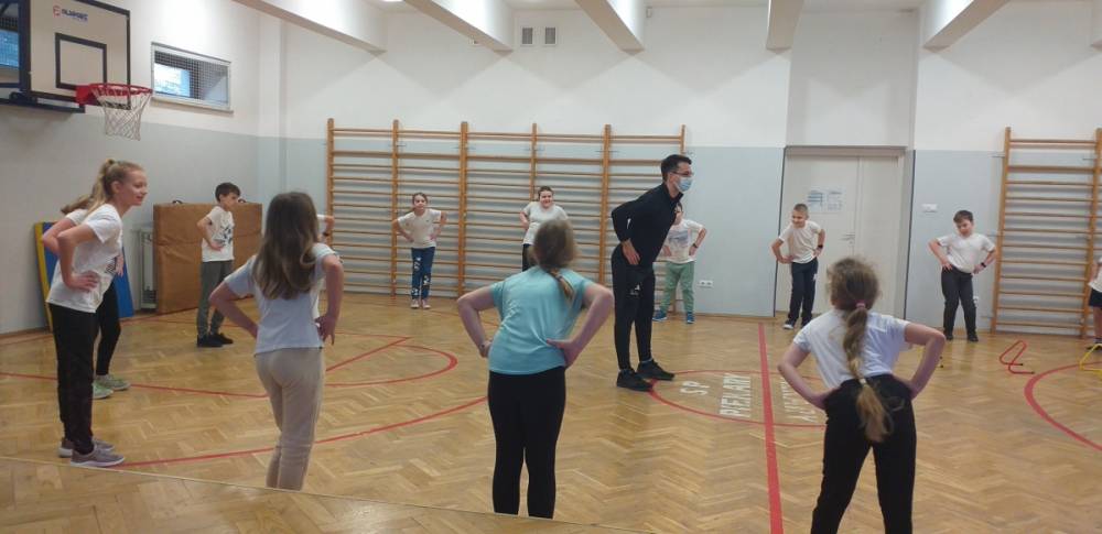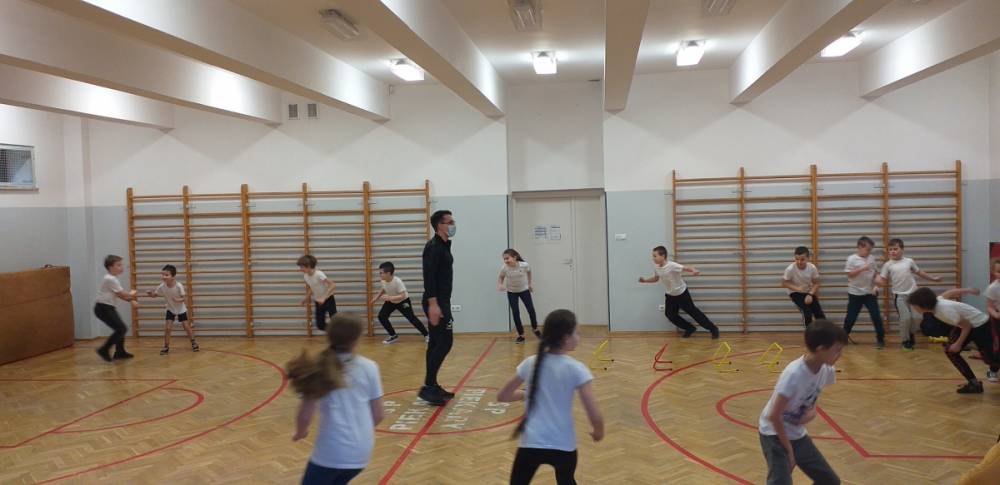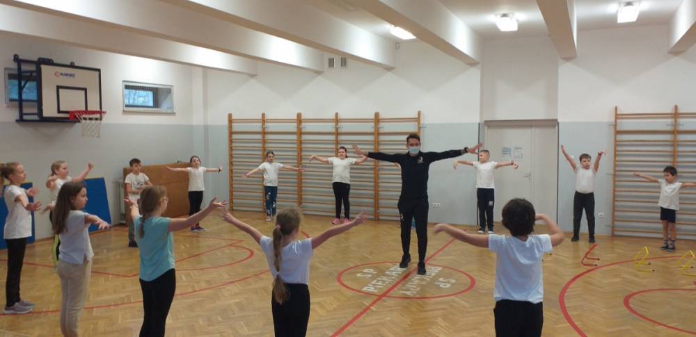 Uczniowie klasy trzeciej doskonale wiedzą, że sport to zdrowie. W drugim tygodniu miesiąca lutego dowiadywali się, jak należy dbać o swoje zdrowie i dobrą kondycję, przygotowywali również prezentacje o polskich sportowcach. Realizowany temat był okazją do zaproszenia na lekcję wychowania fizycznego rodzica jednego z uczniów – pana Mateusza Barcika, który pracuje jako trener personalny. Gość rozmawiał z uczniami o tym, jakie znaczenie ma ruch dla zdrowia i jak należy dbać o swoją sylwetkę. W kolejnej części lekcji tata Mai poprowadził ćwiczenia rozciągająco – sprawnościowe, które uczniowie wykonywali z wielkim zapałem. Serdecznie dziękujemy panu Mateuszowi Barcikowi za poświęcony czas i wspaniałe ćwiczenia.