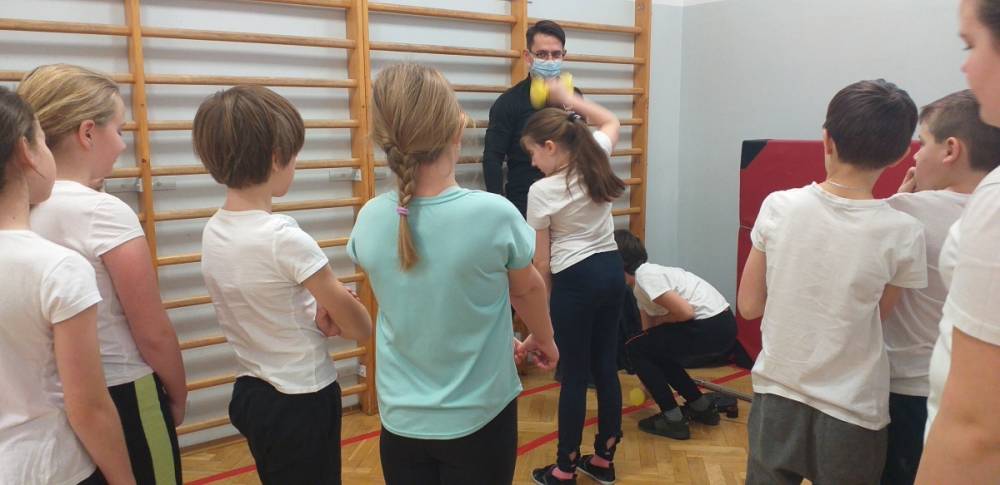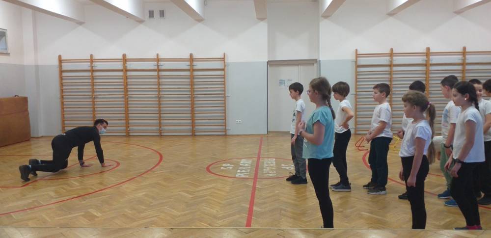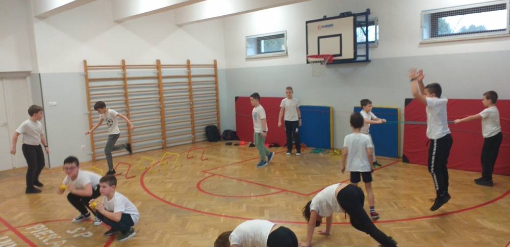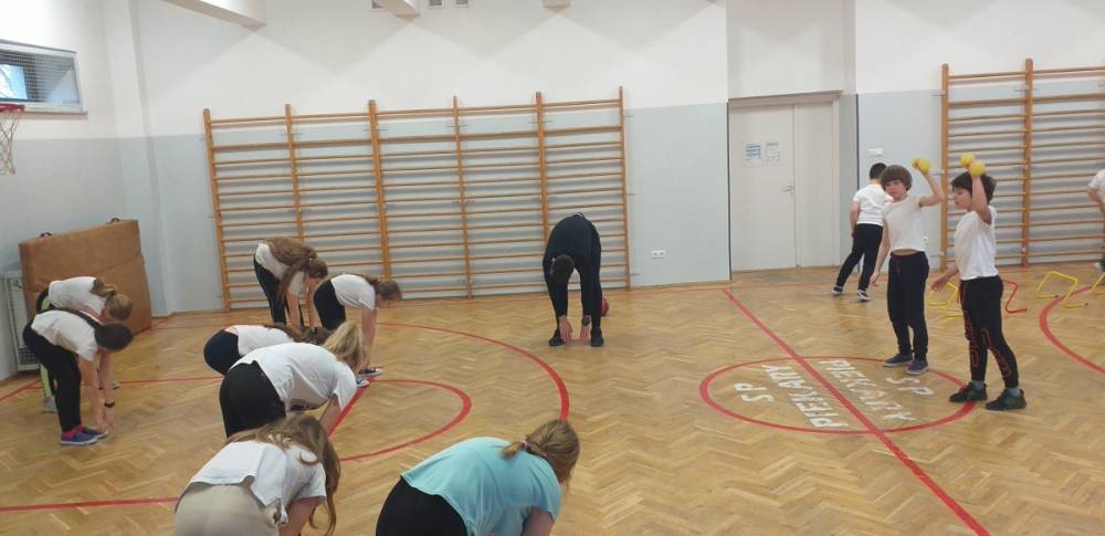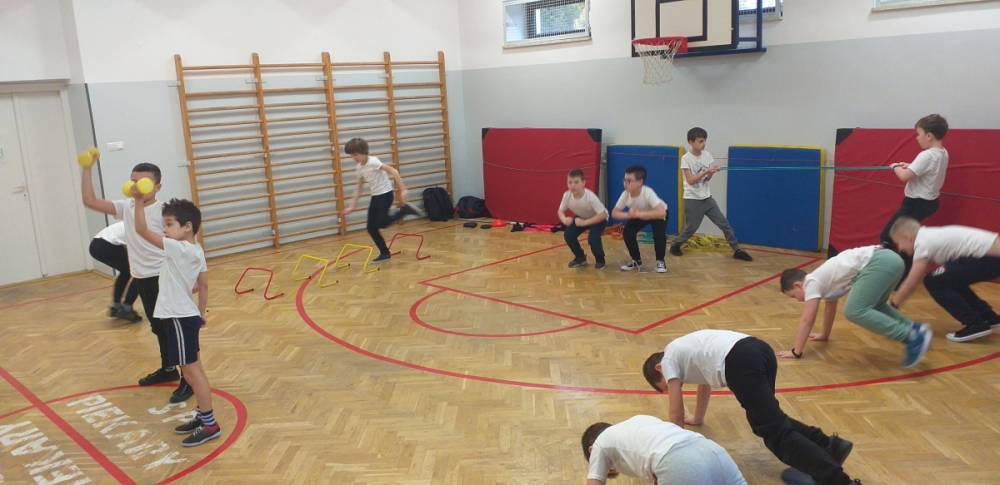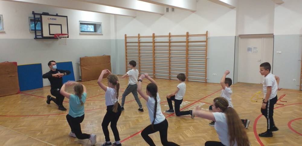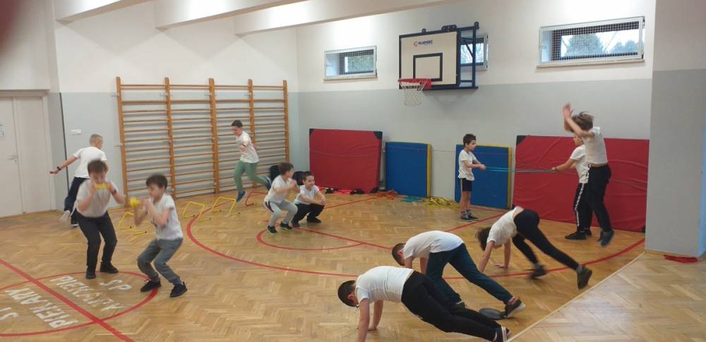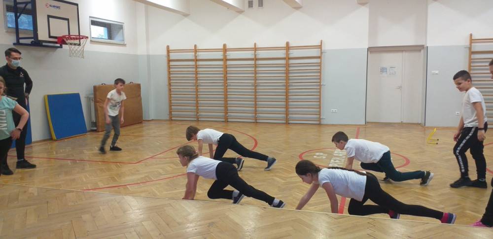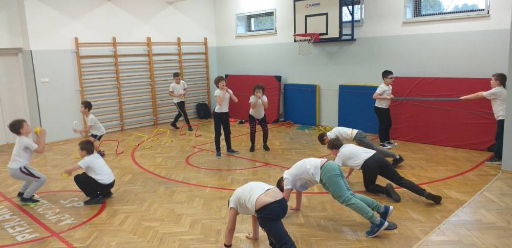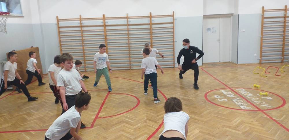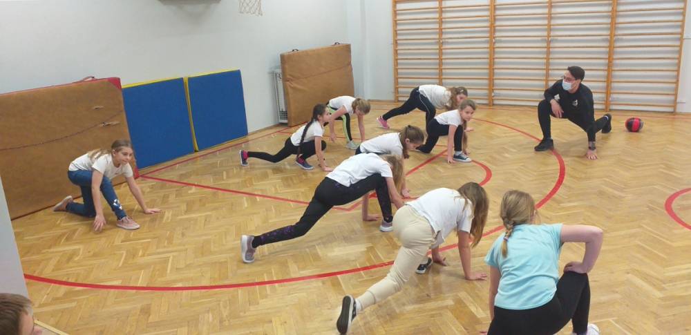 Uczniowie klasy trzeciej doskonale wiedzą, że sport to zdrowie. W drugim tygodniu miesiąca lutego dowiadywali się, jak należy dbać o swoje zdrowie i dobrą kondycję, przygotowywali również prezentacje o polskich sportowcach. Realizowany temat był okazją do zaproszenia na lekcję wychowania fizycznego rodzica jednego z uczniów – pana Mateusza Barcika, który pracuje jako trener personalny. Gość rozmawiał z uczniami o tym, jakie znaczenie ma ruch dla zdrowia i jak należy dbać o swoją sylwetkę. W kolejnej części lekcji tata Mai poprowadził ćwiczenia rozciągająco – sprawnościowe, które uczniowie wykonywali z wielkim zapałem. Serdecznie dziękujemy panu Mateuszowi Barcikowi za poświęcony czas i wspaniałe ćwiczenia.