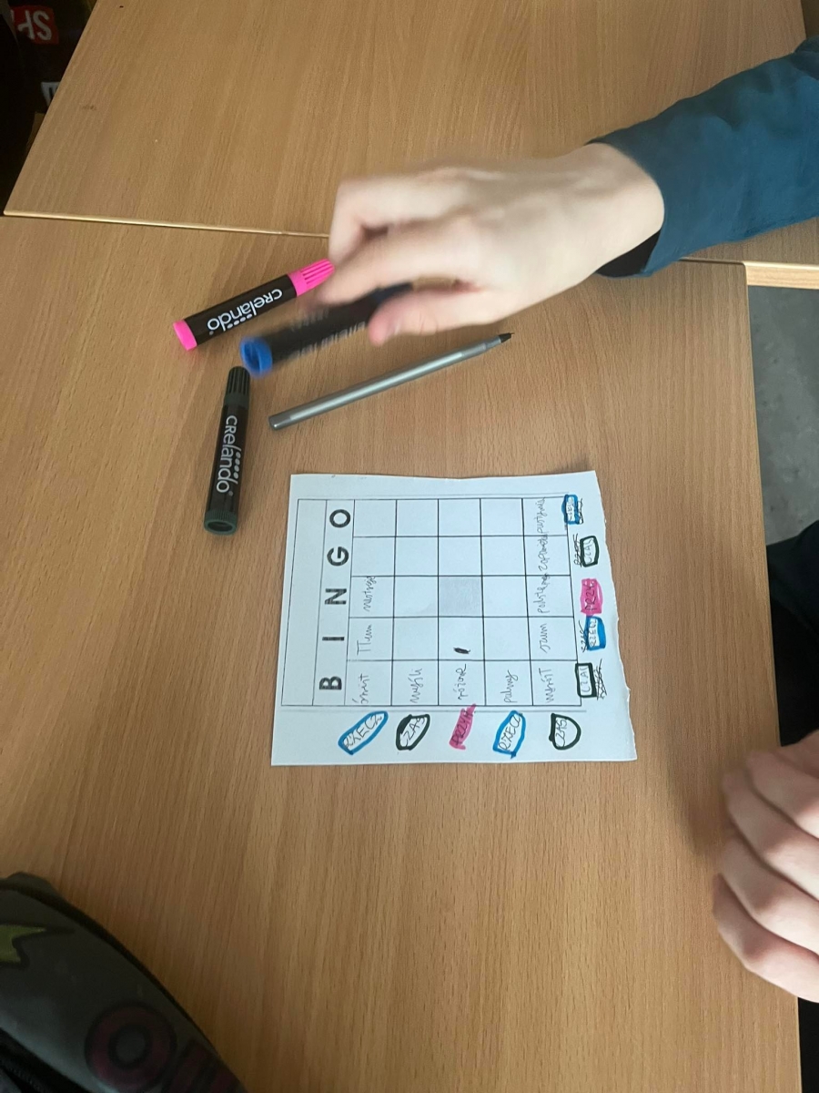 Zainspirowana materiałami Zakręcony belfer zaproponowałam uczniom wysłuchanie piosenki zatytułowanej “Kaktus” i uzupełnianie planszy bingo usłyszanymi częściami mowy. Nastąpiła pełna koncentracja. Wszyscy świetnie sobie poradzili z zadaniem, zarówno Ci młodsi, którzy dopiero się uczą, jak i starsi, którzy w nowej formie powtórzyli części mowy!