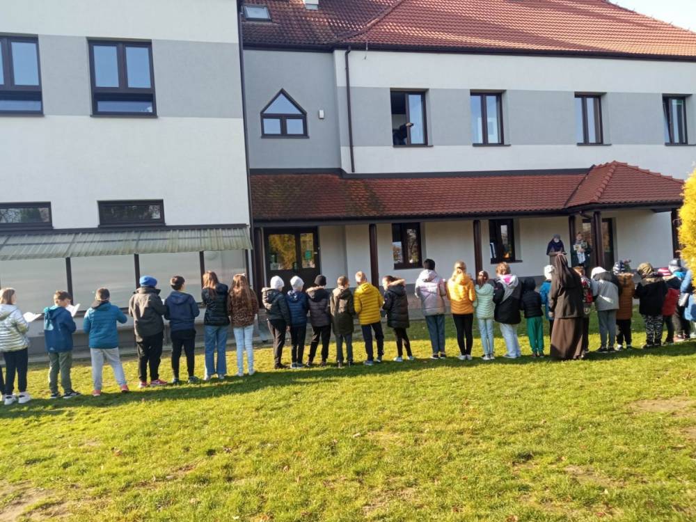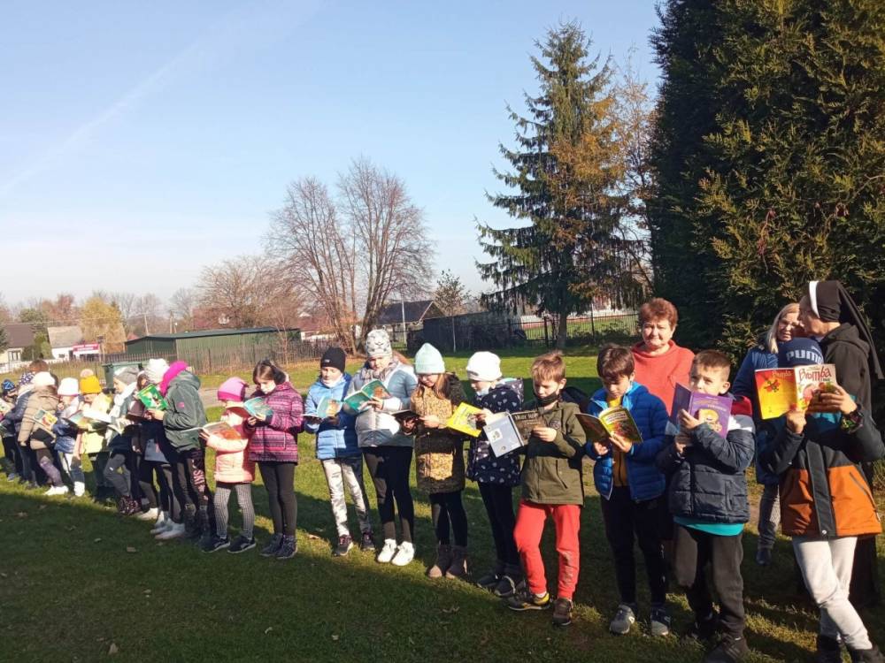 W ramach akcji wszyscy uczniowie naszej szkoły, od najmłodszych dzieci z oddziału 0 po uczniów klasy VIII, czytali w czasie przerwy między godziną 10.40 a 11.00 książki z biblioteki. Wszyscy uczniowie wraz z nauczycielami utworzyli długiego "węża książkowego", gromadząc na podwórku szkolnym 145osób!!!