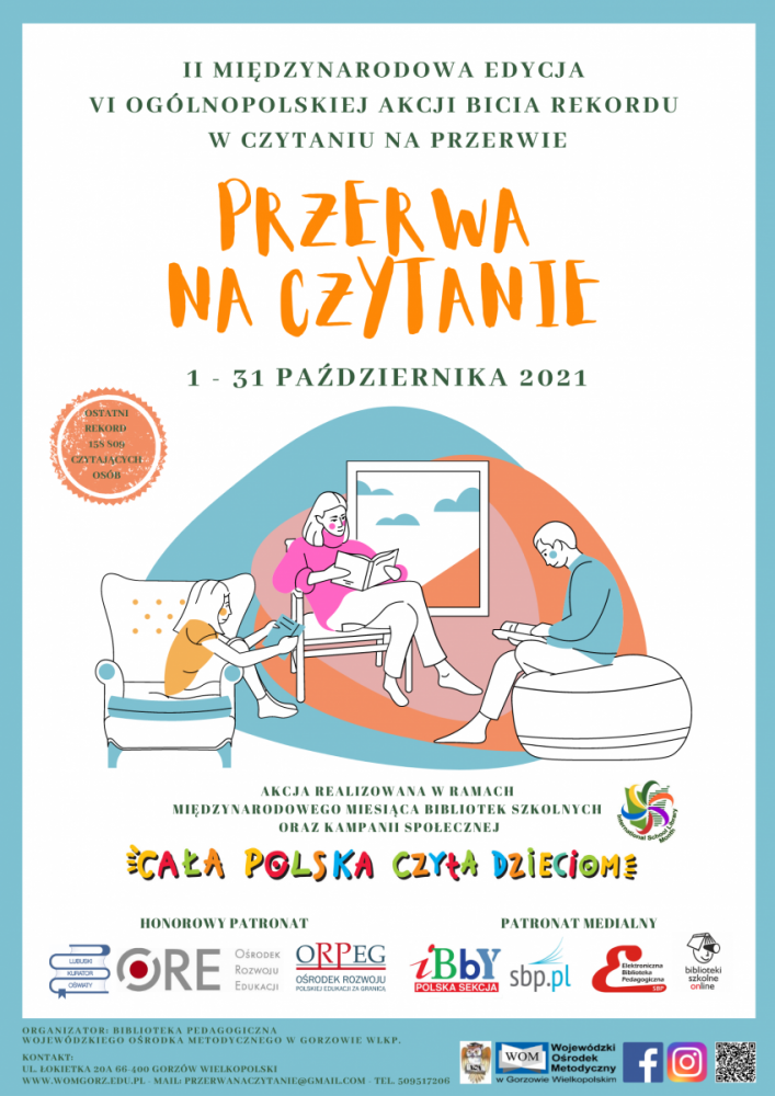 Mamy nadzieję, że nasi licznie zgromadzeni czytelnicy pomogą w osiągnięciu międzynarodowego rekordu w liczbie osób czytających na przerwie.