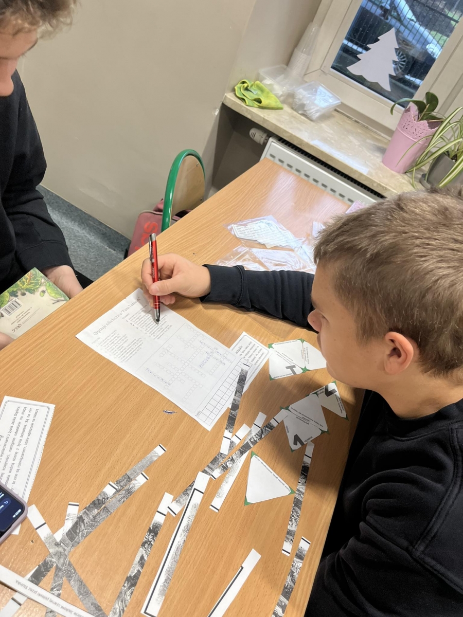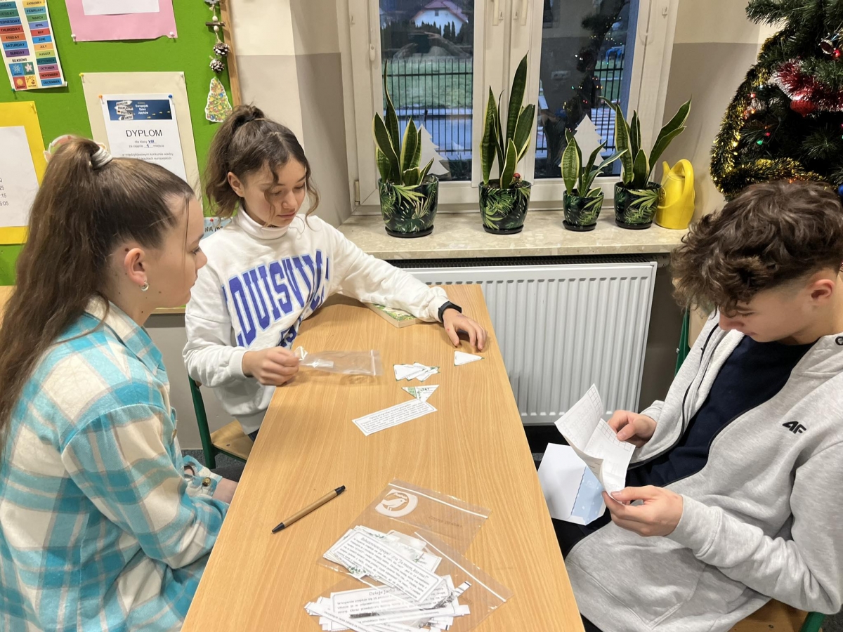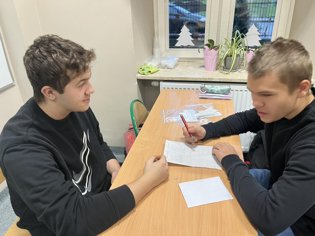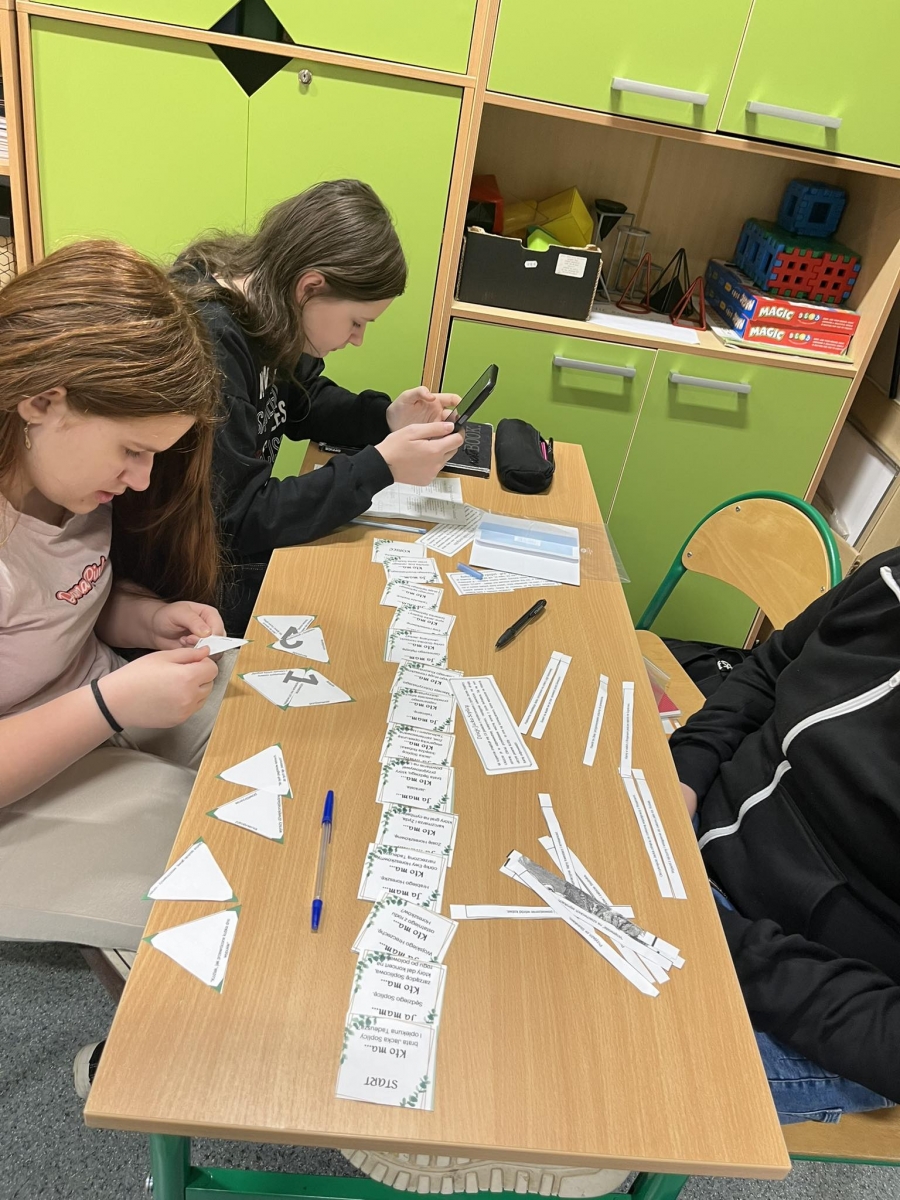 Na lekcji poświęconej podsumowaniu wiadomości z lektury „Pan Tadeusz” Adama Mickiewicza młodzi ludzie w ten odmienny od tradycyjnego sprawdzianu sposób sprawdzali swoją wiedzę, rozwiązując ćwiczenia – zagadki.