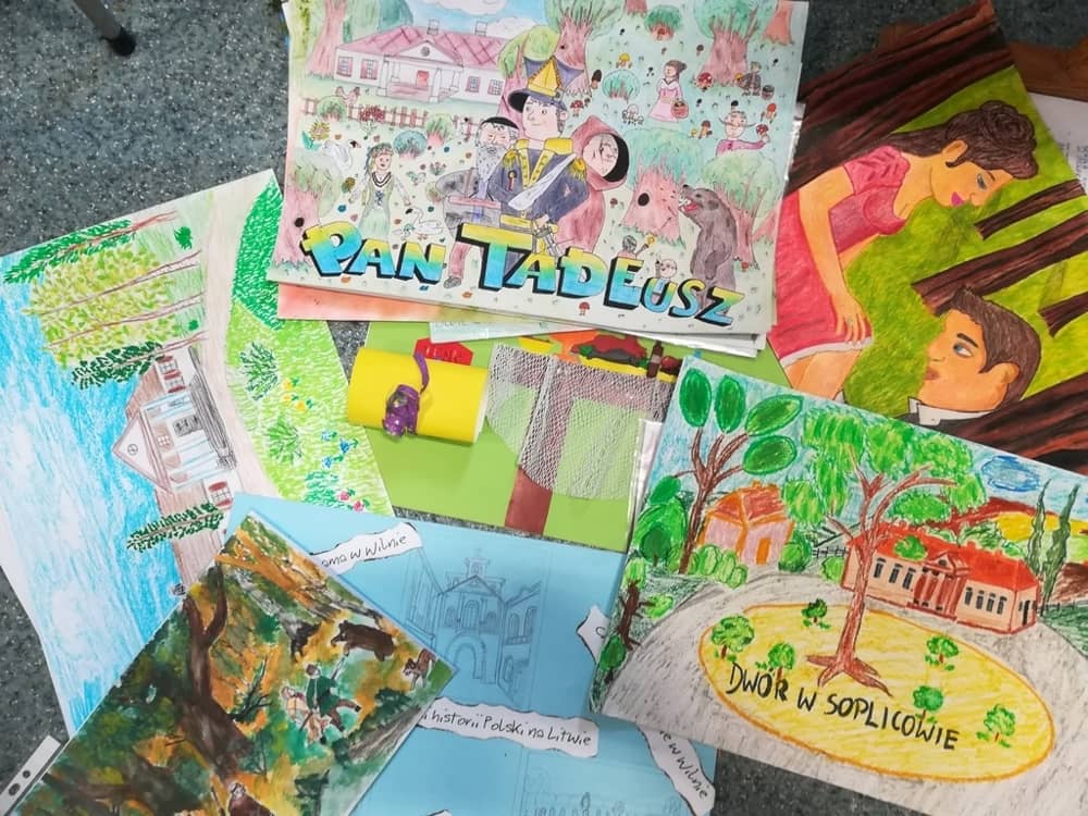 Uczestnicy konkursu mogli stworzyć pracę plastyczną lub/ i literacką. Największym zainteresowaniem wśród uczniów cieszyło się dzieło Adama Mickiewicza pt. Pan Tadeusz. Powstały piękne rysunki Soplicowa, obyczaju grzybobrania czy portrety głównego bohatera wraz z ukochaną Zosią.