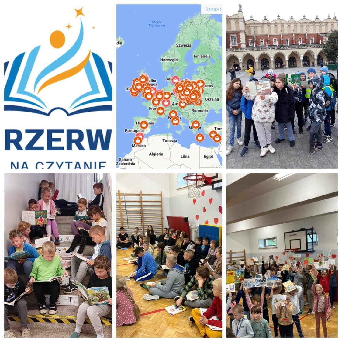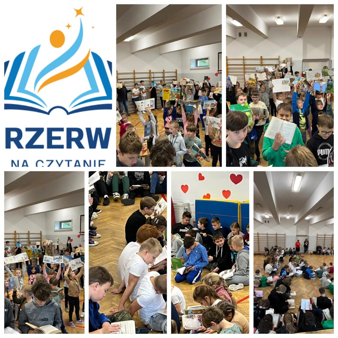 My, w celu bicia rekordu, zgromadziliśmy się na sali gimnastycznej i wszyscy, od najmłodszych przedszkolaków z oddziału Mądrych Sówek po ósmoklasistów i nauczycieli czytaliśmy ulubione lektury. W akcji, pomimo wyjazdu na wycieczkę, uczestniczyli również uczniowie kl. III, którzy włączyli się w bicie rekordu, czytając w czasie przerwy na ulicach Krakowa. W sumie akcja „Przerwa na czytanie” w naszej szkole zgromadziła 143 uczestników!!!!