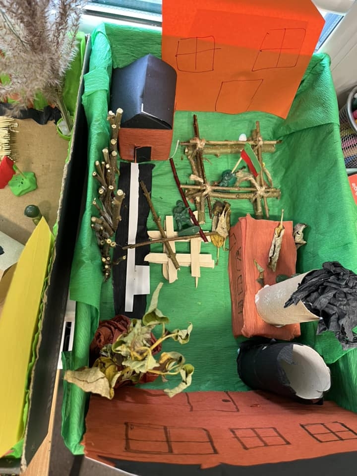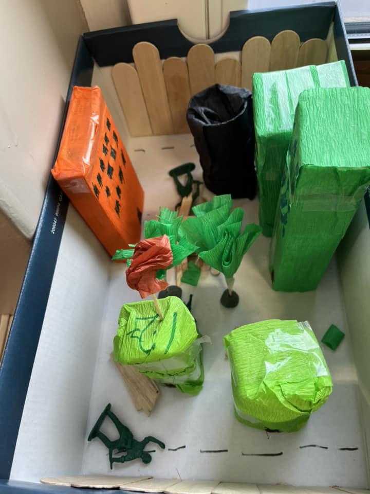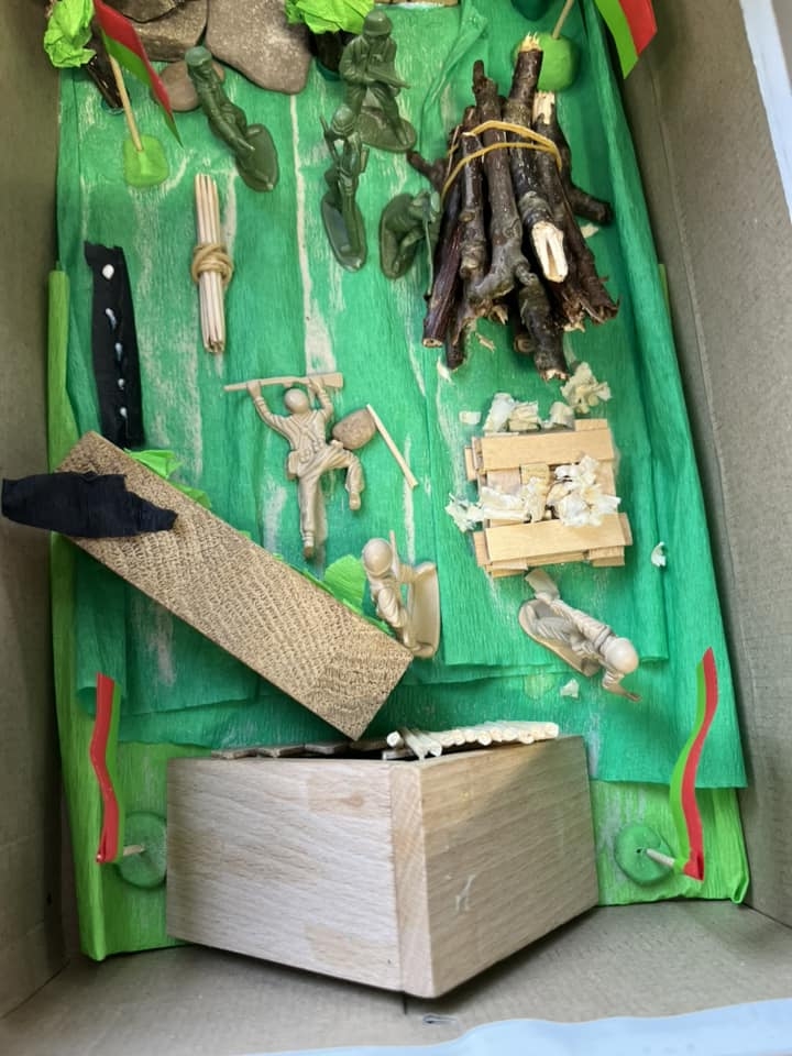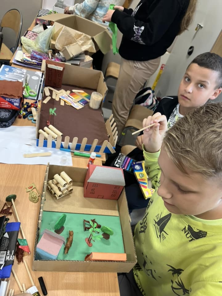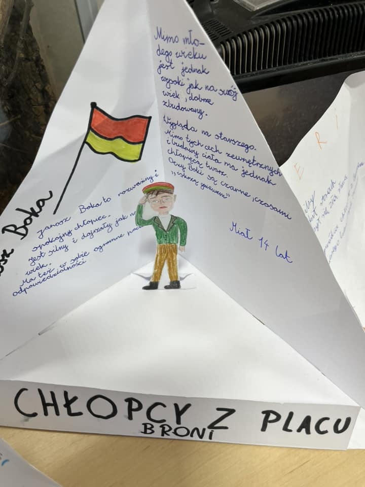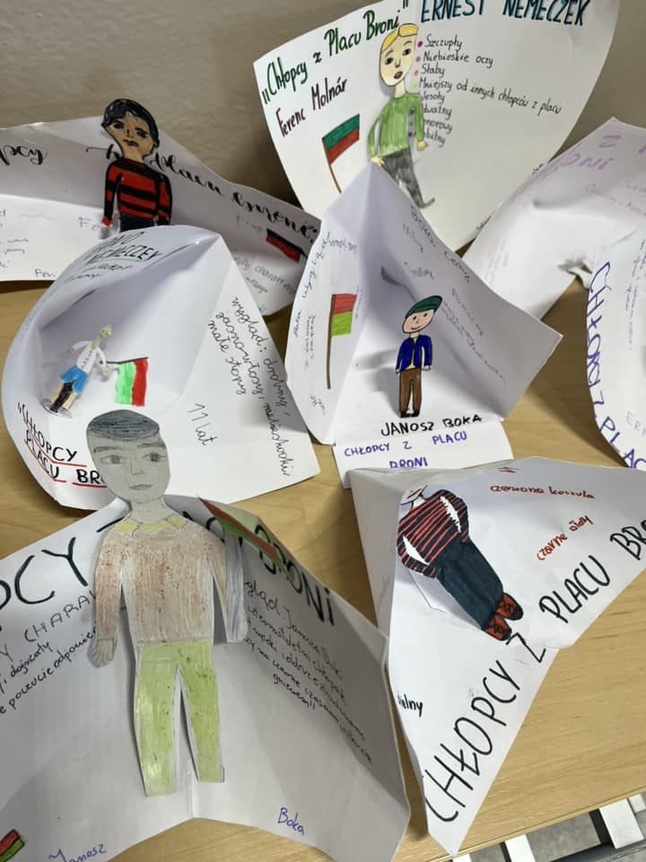Były wiadomości teoretyczne, ale i praktyczne działania. Elementy charakterystyki chłopców przedstawione zostały na makietach figurek, a później przyszedł czas na opis. W czasie lekcji z uwagą omówiony został opis placu i każdy indywidualnie przeanalizował schemat tego ważnego dla bohaterów miejsca, rysując schemat w zeszycie. Na zakończenie zajęć przyszedł czas na twórczą aktywność. Dzieci wiernie odtwarzały wygląd placu, umieszczając go w przestrzeni pudełka po butach. Był to dobry sposób na sprawdzian umiejętności uważnego czytania i wszyscy poradzili sobie z nim świetnie. Uczniowie w tym ćwiczeniu wykazali się również dużą kreatywnością! Jednak to nie koniec zadania. Każdy musiał jeszcze udowodnić, że jego Plac Broni to wierne odzwierciedlenie miejsca opisanego w książce.