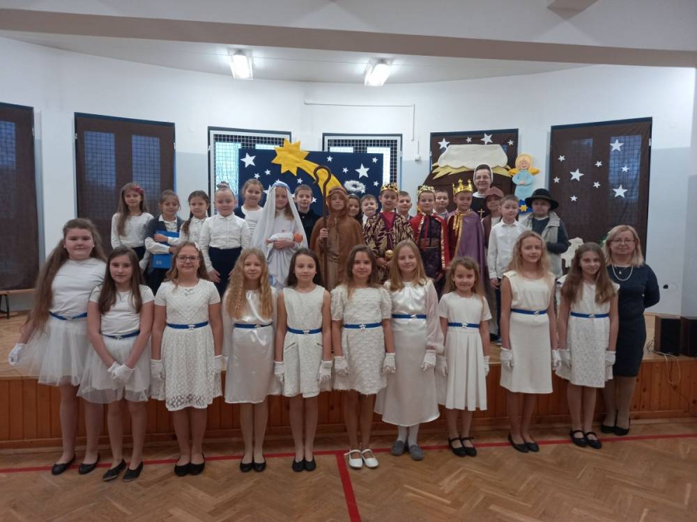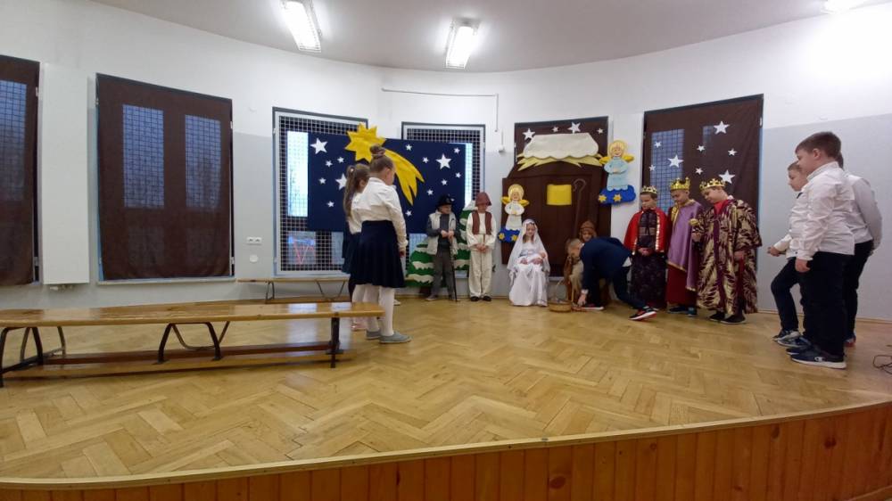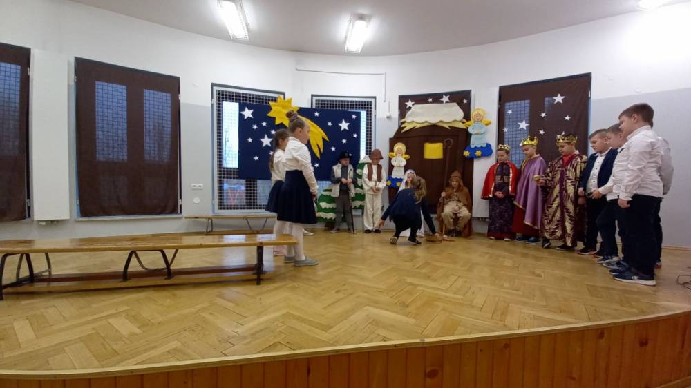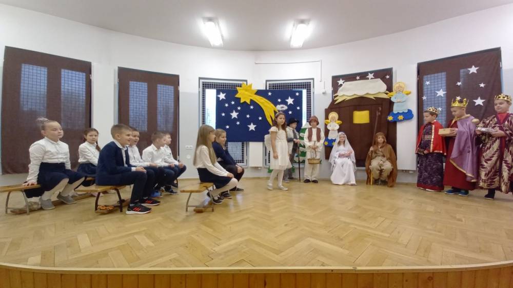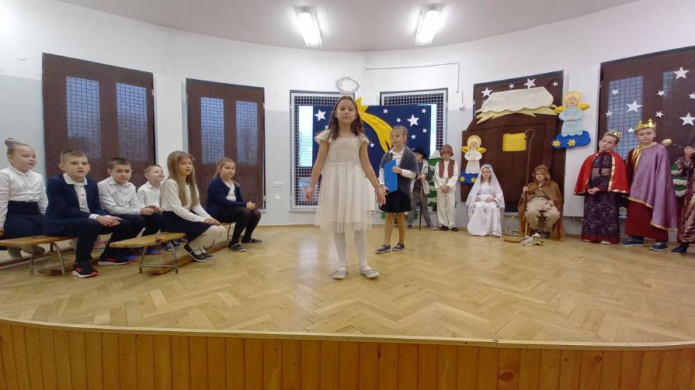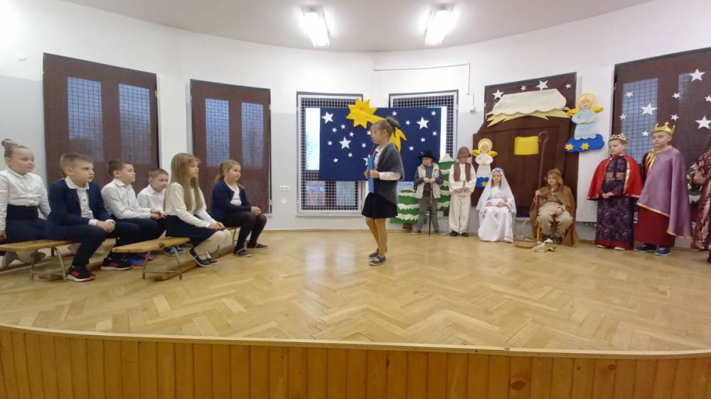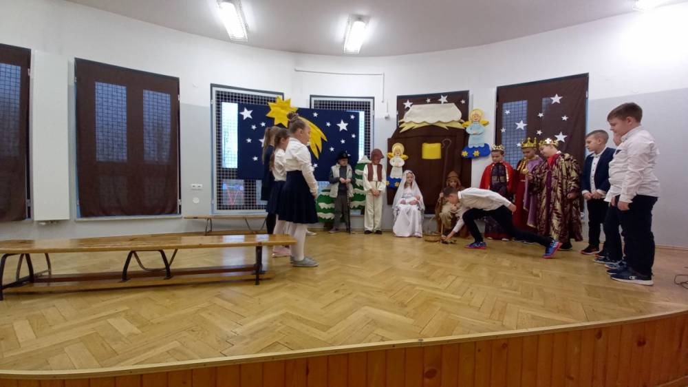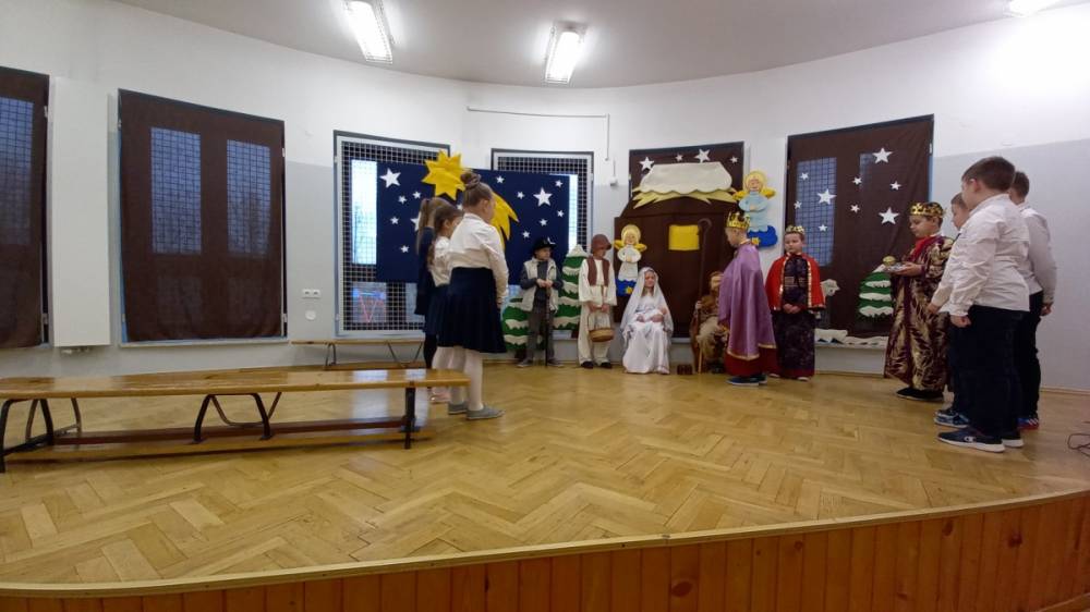 W piątek 17 grudnia 2021 roku uczniowie klasy II przedstawili jasełka zatytułowane „Co odmieniło naszą klasę?"