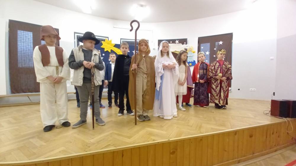Oby Boże Narodzenie sprawiło w nas wszystkich tak pozytywne zmiany i było radością i udziałem naszych bliskich i wszystkich których spotykamy. Z powodu choroby niektóre dzieci z klasy II nie mogły zagrać wcześniej przygotowanych ról, dlatego w ostatniej chwili zastąpili ich uczniowie z klasy I. Dziękujemy im za to i doskonale rozumiemy, że to czasem niełatwe.