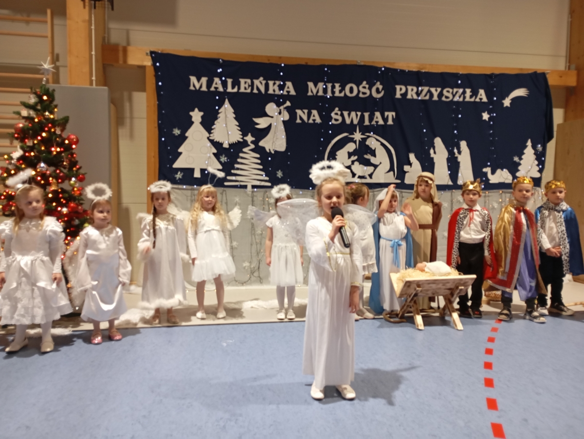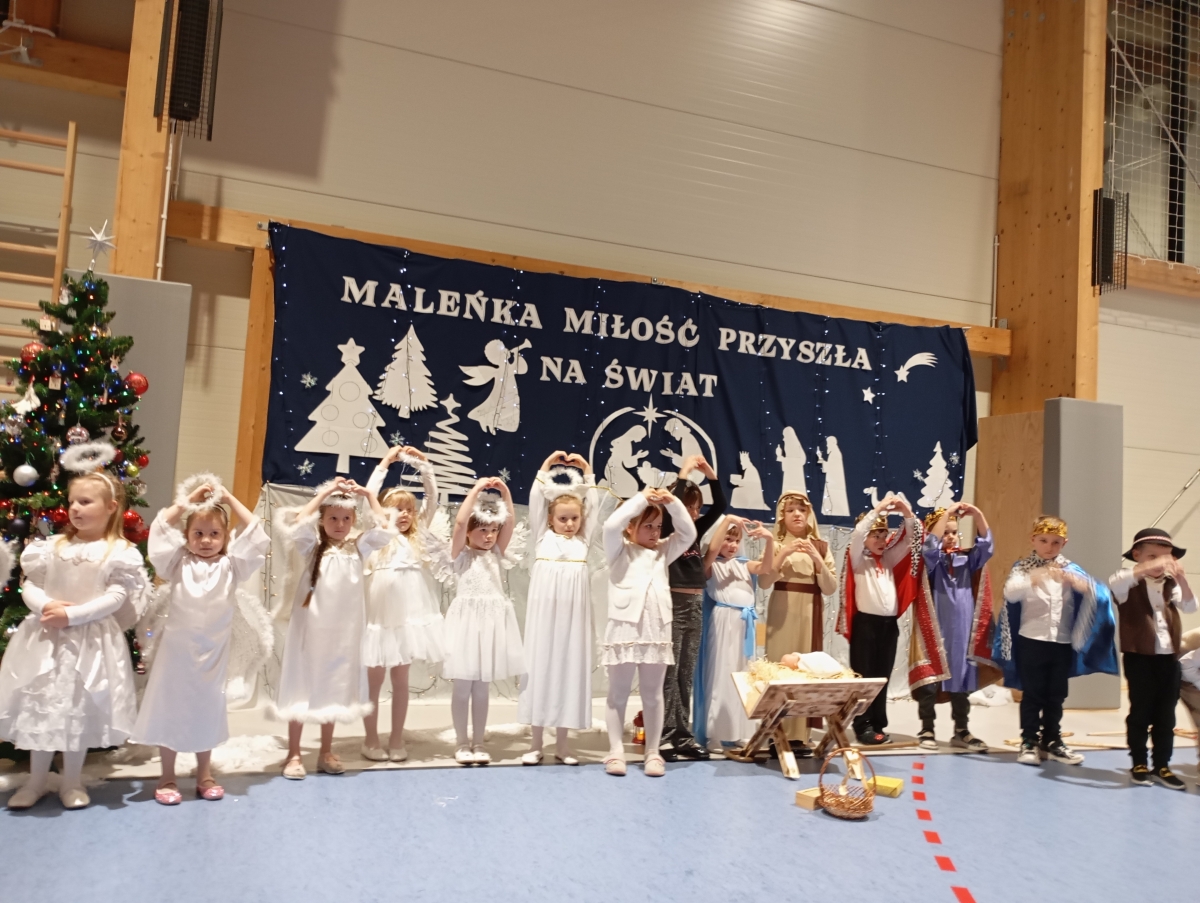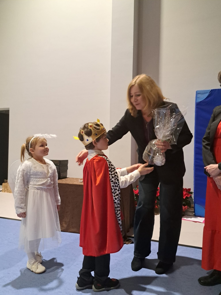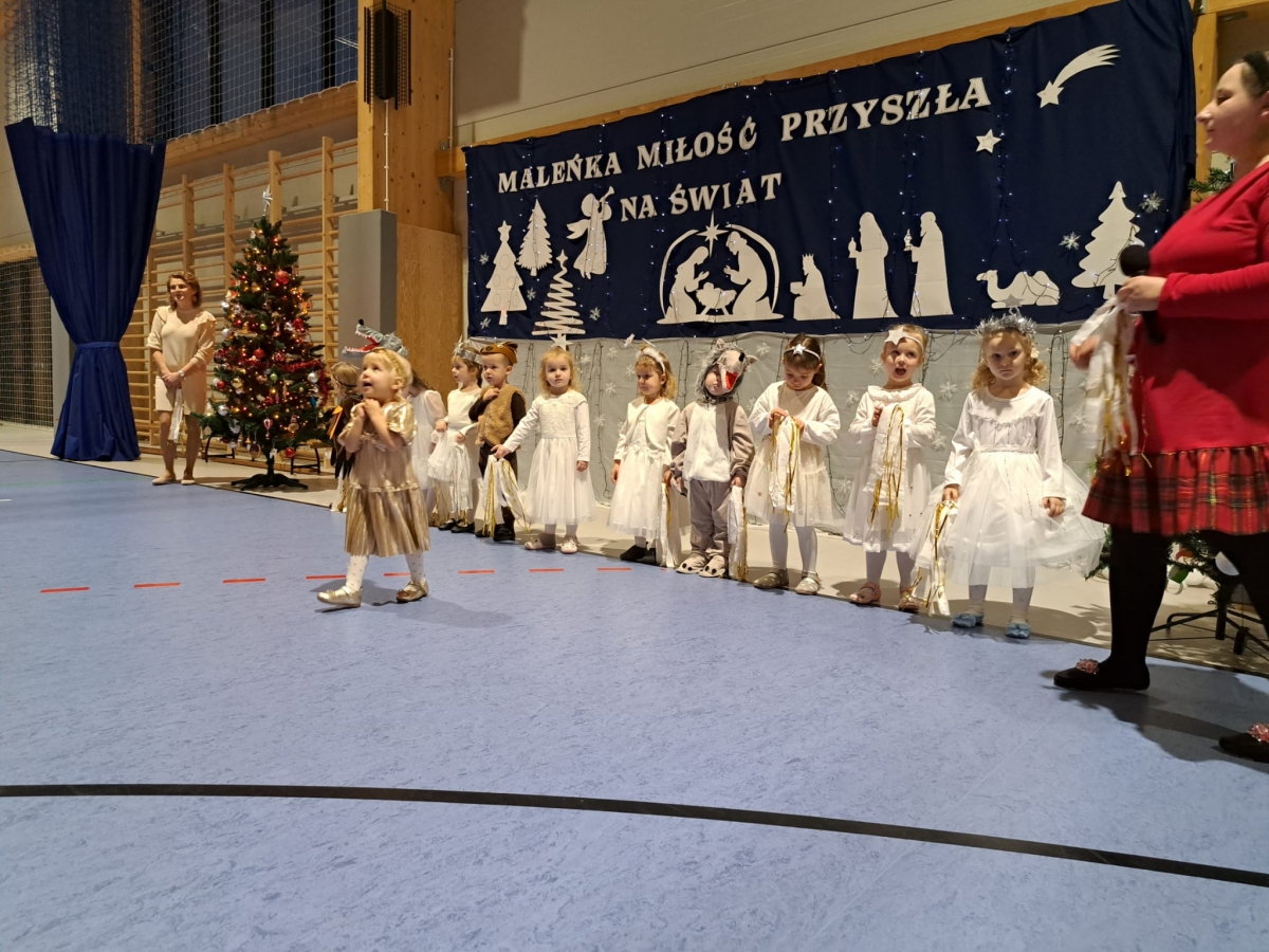 To był wyjątkowy wieczór z udziałem wszystkich przedszkolaków oraz zaproszonych gości. Na uroczystość Jasełek przybli Rodzice, Nauczyciele oraz Pani Dyrektor i Wice Dyrektor. Występy dzieci urzekły widownię. Przedstawiona została opowieść o gwiazdce poszukującej Jezusa, która odnalazła po drodze miłość, dobroć i życzliwość. Po części artystycznej Pani Dyrektor złożyła piękne gratulacje i życzenia wszystkim dzieciom i rodzicom. Następnie dzieci wręczyły upominki świąteczne wszystkim zaproszonym gościom. Wielką radość sprawili również Rodzice nauczycielom i podarowali im świąteczne niespodzianki. Magia świąt i ciepło serc pozostaną z nami na długo.