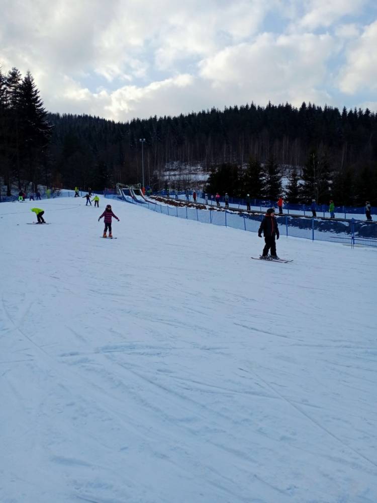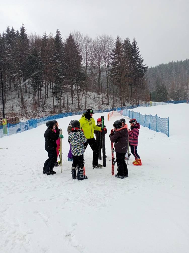Lekcje odbywają się pod kierunkiem instruktorów w Ośrodku „Czarny Groń” w Rzykach. Podczas dwóch dotychczasowych wyjazdów uczniowie oswajali się ze sprzętem i uczyli się podstaw jazdy na nartach na tzw. „oślej łączce”. W środę mamy już wyruszyć na główny stok!