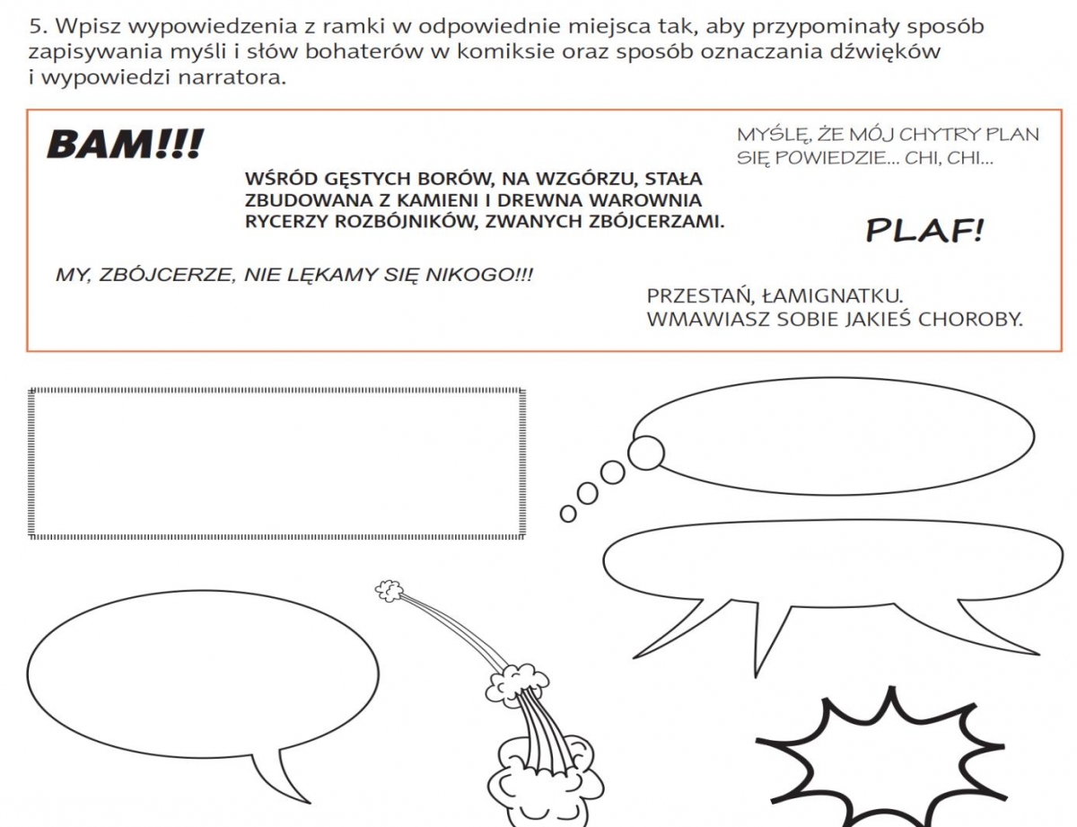 W czasie zajęć uczniowie poznali budowę tego tekstu, opisywali bohaterów, rozwiązywali ćwiczenia i karty pracy. Jednak w czasie zajęć nie zabrakło również zabawy. Było Komiksowe TABOO – gdzie trzeba było wyjaśnić wylosowane hasło bez wykorzystania zapisanych pod nim zakazanych słów. Za złamanie zakazu gracz mógł otrzymać żółtą kartkę, ale wszyscy świetnie poradzili sobie z tym trudnym zadaniem!
