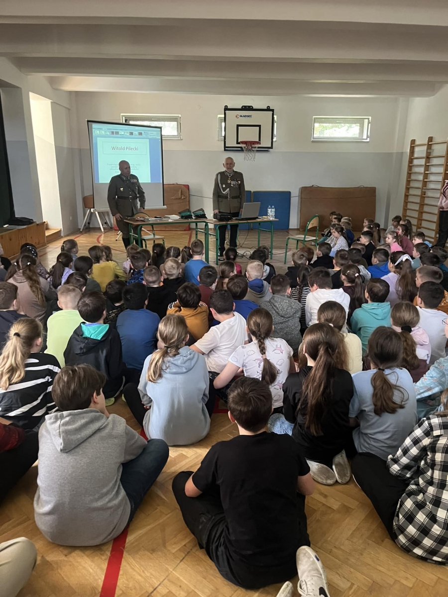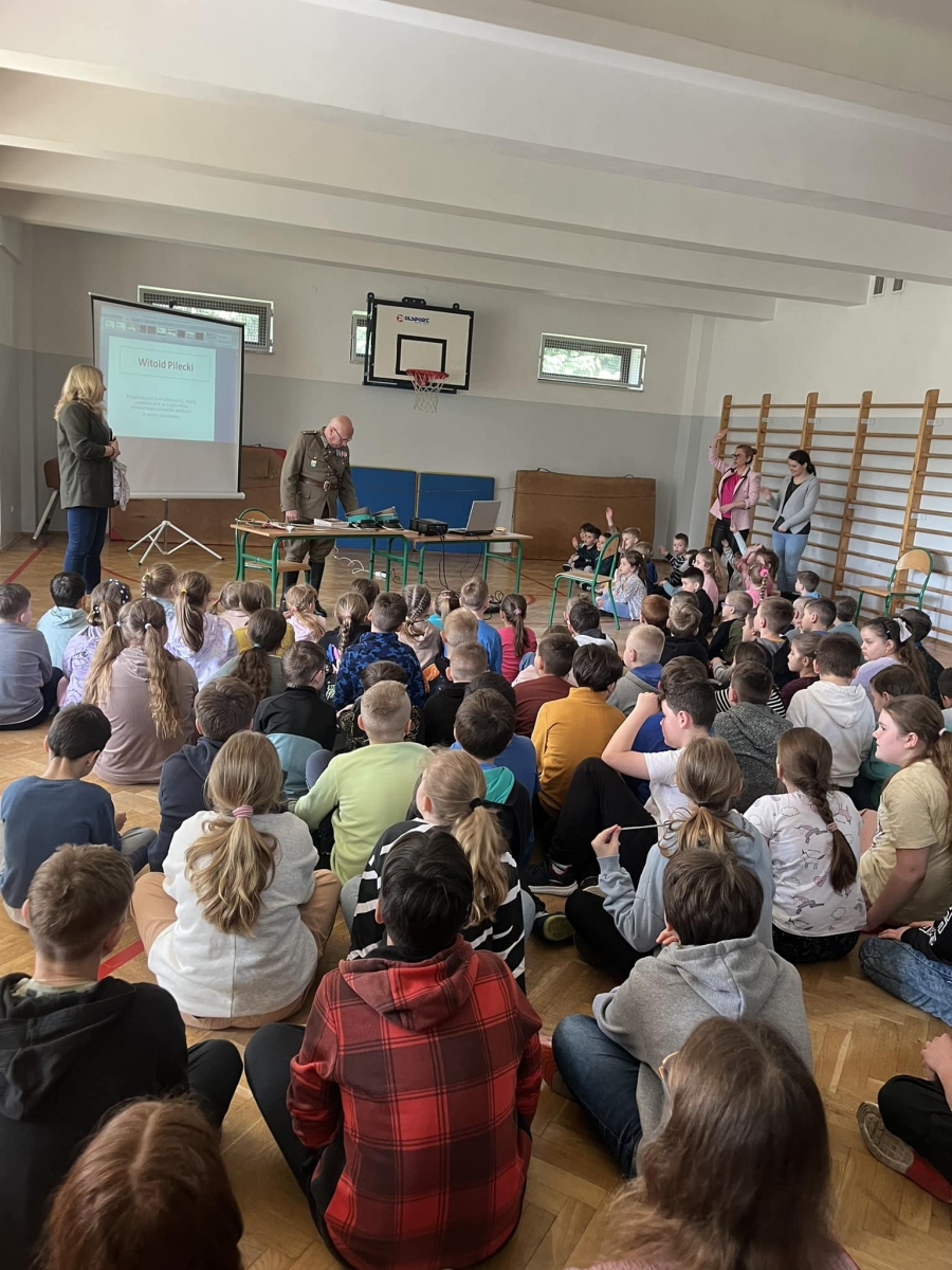 W naszej szkole uczniowie mieli dziś możliwość wysłuchania opowieści o Witoldzie Pileckim. Był on bohaterem wojny z bolszewikami, oficerem AK, dobrowolnym więźniem w Auschwitz, twórcą organizacji ruchu oporu i autorem pierwszych raportów o niemieckich zbrodniach w obozie. Uciekł z Auschwitz w nocy z 26 na 27 kwietnia 1943 r. wraz z dwoma współwięźniami związanymi z ruchem oporu Janem Redzejem i Edwardem Ciesielskim. Szli przez Babice, Alwernię, Tyniec i Puszczę Niepołomicką. W pierwszych dniach maja dotarli do Bochni i Nowego Wiśnicza, gdzie ukrywali się przez następne miesiące. W majątku Koryznówka należącym do Tomasza Serafińskiego Pilecki pisał pierwszy raport z Auschwitz.