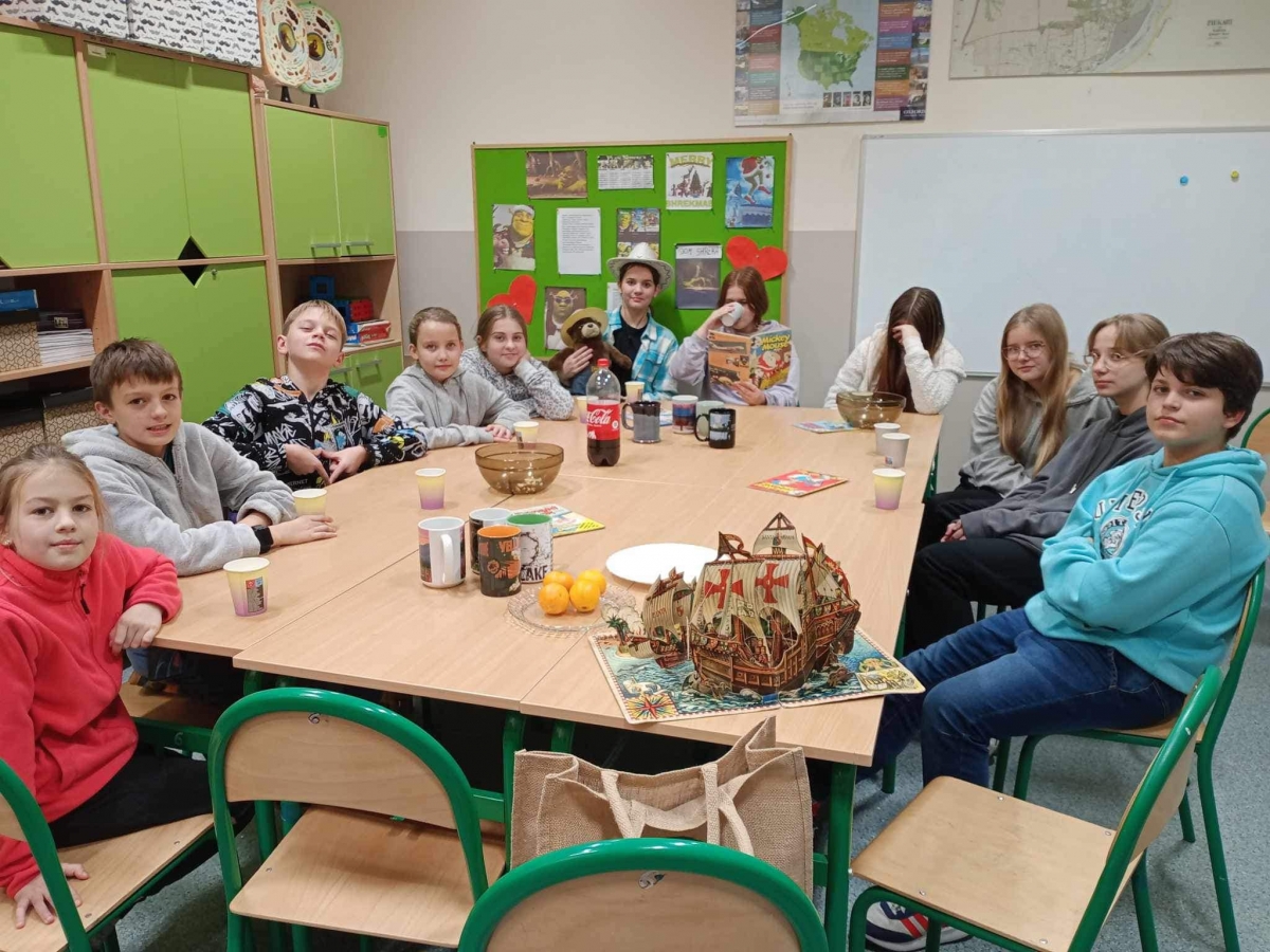 Z tematem Ameryki związana jest wytwórnia Walta Disney’a, dlatego też uczniowie oglądnęli słynną Myszkę Miki i misia Yogi. W czasie projekcji uczniowie pili colę, jedli popcorn oraz donaty.