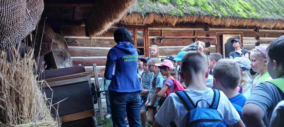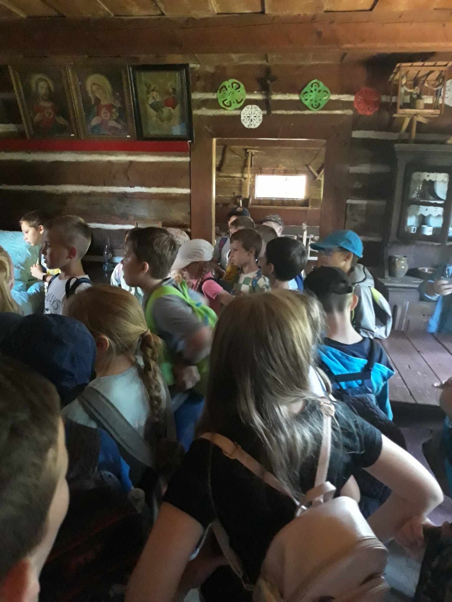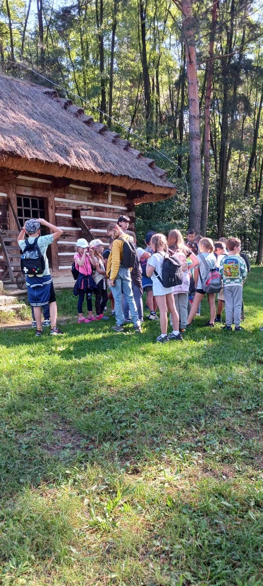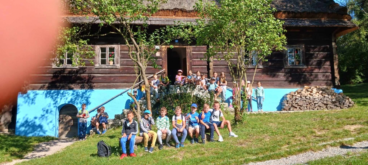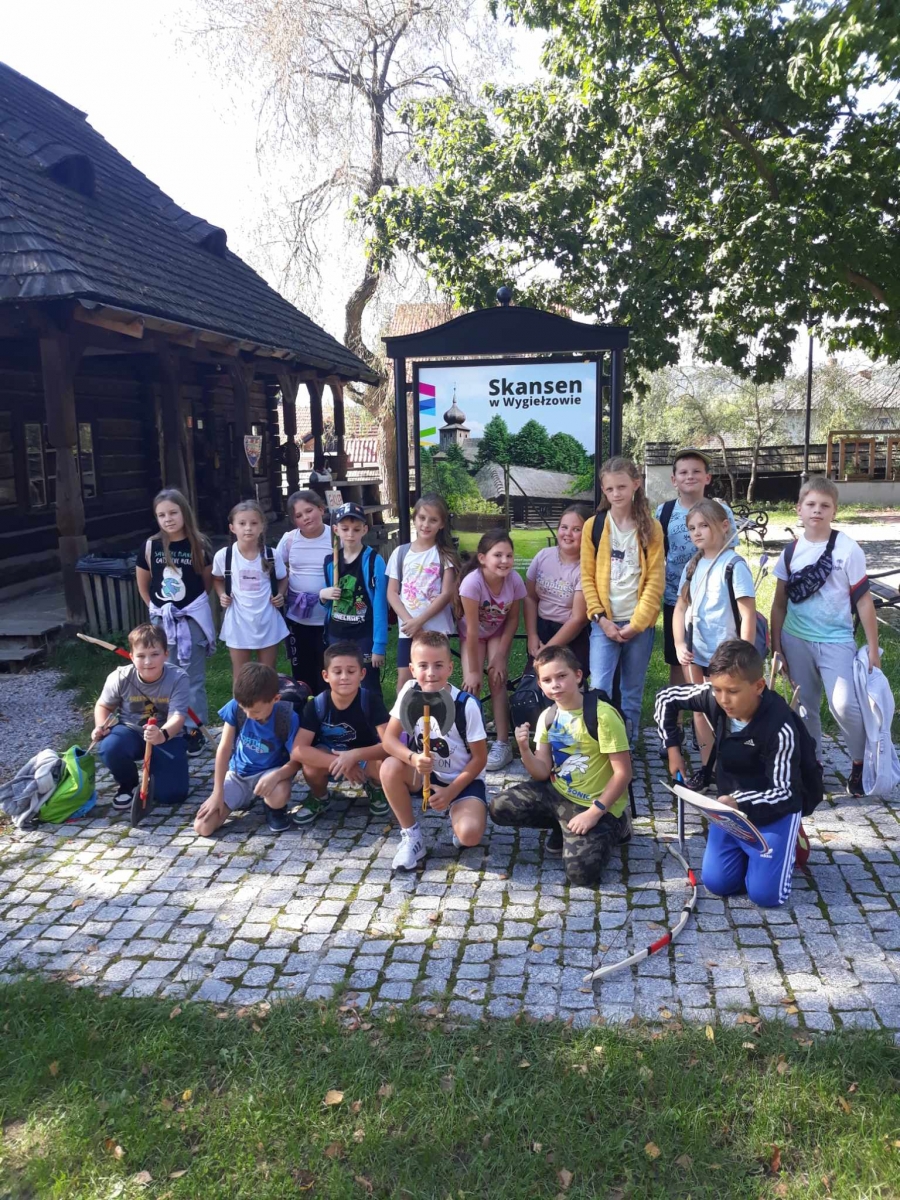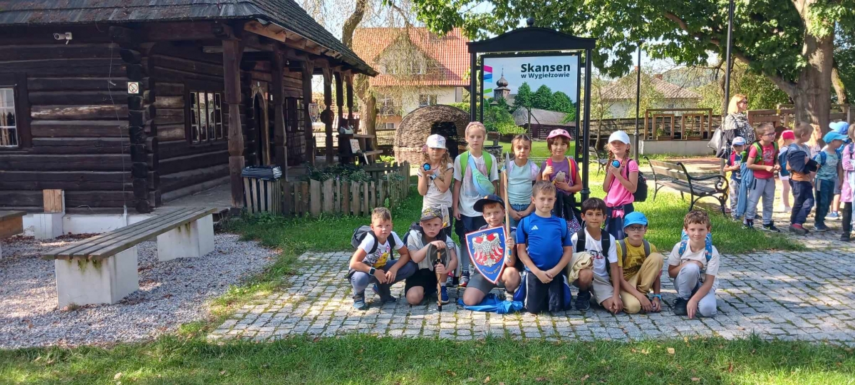 Tym razem odwiedziliśmy Skansen w Wygiełzowie. Mieliśmy okazję zagościć w chatach z przeszłości i zobaczyć, jak żyło się naszym pradziadkom. Na naszej drodze wędrówki stanęła również kuźnia z XIX w przeniesiona z Liszek. Uczestniczyliśmy także w warsztatach „Od ziarenka do bochenka”. Poznaliśmy różne rodzaje zbóż, próbowaliśmy swoich sił w młóceniu cepami i mieleniu w żarnach. Dowiedzieliśmy się jakie zwyczaje związane były z wypiekiem chleba. Mogliśmy degustować chleb upieczony na zakwasie. Na zakończenie, każdy uczestnik otrzymał książeczkę informującą o tym, ile dawniej trzeba było włożyć pracy, żeby zjeść chleb. Po wyczerpującym zwiedzaniu mieliśmy okazję zregenerować siły na skansenowskim placu zabaw i przy smacznym obiadku. Wygiełzów pożegnał nas piękną panoramą zamku w Lipowcu.