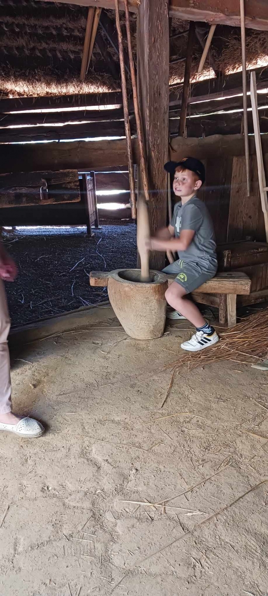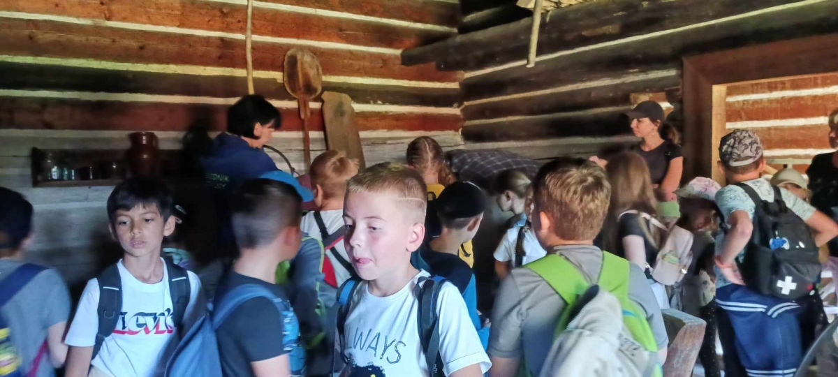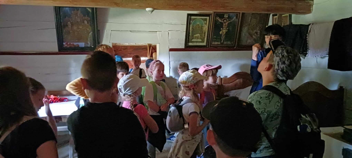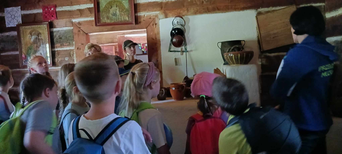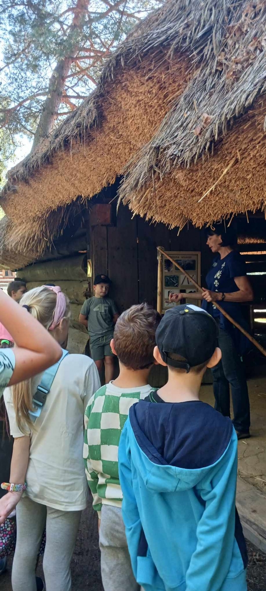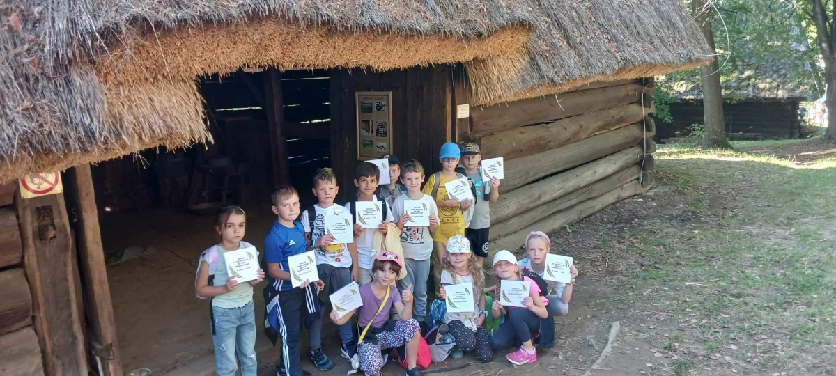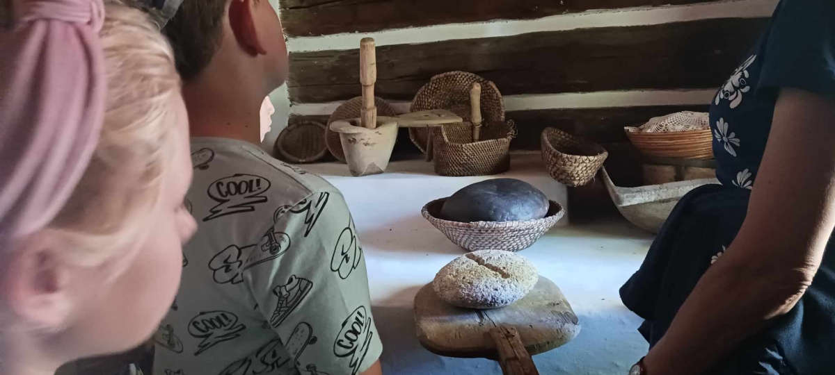 Tym razem odwiedziliśmy Skansen w Wygiełzowie. Mieliśmy okazję zagościć w chatach z przeszłości i zobaczyć, jak żyło się naszym pradziadkom. Na naszej drodze wędrówki stanęła również kuźnia z XIX w przeniesiona z Liszek. Uczestniczyliśmy także w warsztatach „Od ziarenka do bochenka”. Poznaliśmy różne rodzaje zbóż, próbowaliśmy swoich sił w młóceniu cepami i mieleniu w żarnach. Dowiedzieliśmy się jakie zwyczaje związane były z wypiekiem chleba. Mogliśmy degustować chleb upieczony na zakwasie. Na zakończenie, każdy uczestnik otrzymał książeczkę informującą o tym, ile dawniej trzeba było włożyć pracy, żeby zjeść chleb. Po wyczerpującym zwiedzaniu mieliśmy okazję zregenerować siły na skansenowskim placu zabaw i przy smacznym obiadku. Wygiełzów pożegnał nas piękną panoramą zamku w Lipowcu.