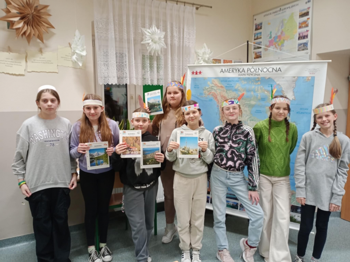 Uczniowie w czasie spotkania poznali warunki naturalne Kanady, najbardziej znane miasta, a także dowiedzieli się wiele na temat ludności Indianach i Eskimosach.