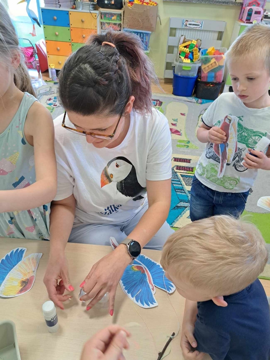 Podczas majowych warsztatów przyrodniczych dzieci poznały różne gatunki papug i ich zwyczaje, w tym arę modrą, która jest szczególnym gatunkiem ze względu na swoją endemiczność w Brazylii. Dowiedziały się gdzie mieszkają oraz jakie zagrożenia spotykają je obecnie. Poznały historię papug hodowlanych, które towarzyszą nam już od starożytności. Na koniec dzieci wykonały modele latającej papugi ary żółtoskrzydłej, czyli popularnej ary czerwonej.