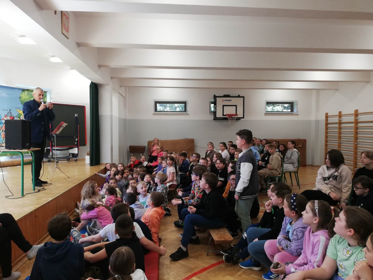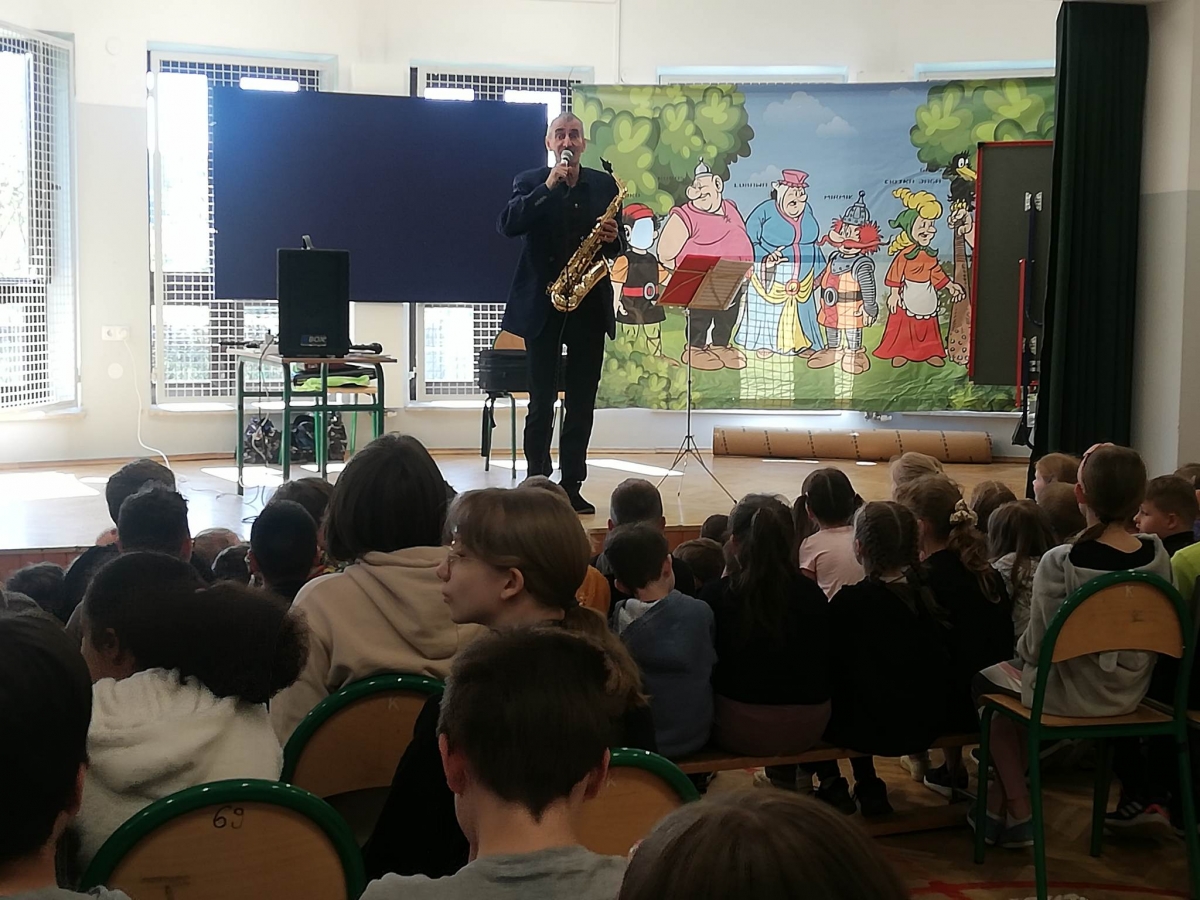 W czasie spotkania odbył się także konkurs, uczniowie odgadywali nazwy granych utworów z bajek, filmów oraz polskich seriali. Zapamiętywali nazwy instrumentów. Aktywni uczestnicy zajęć otrzymali od Pana drobne upominki, naklejki, obrazki instrumentów oraz długopisy.