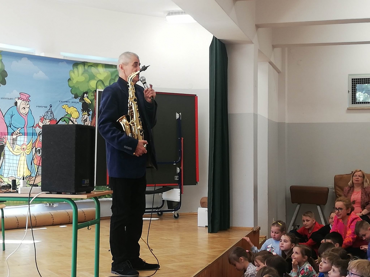10. 05. br. odbył się koncert muzyki filmowej. Uczniowie mogli na żywo posłuchać gry na instrumentach dętych drewnianych. Uczniowie bardzo chętnie oglądali i słuchali w bezpośrednim kontakcie rożka angielskiego, oboju i saksofonu, poznawali ich brzmienie, obserwowali sposób gry na tych instrumentach. Wszyscy zgromadzeni na sali chętnie obcowali z wartościową muzyką.