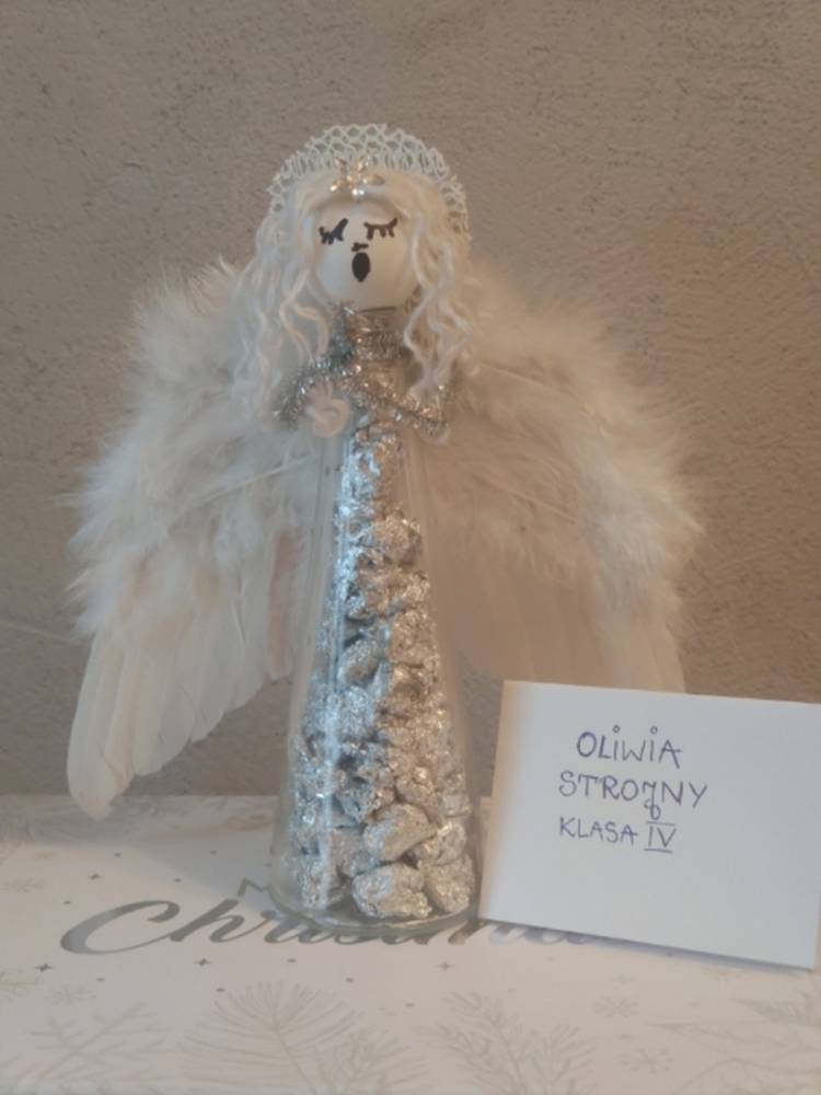 Świąteczny „Konkurs na Najpiękniejszego Anioła” został rozstrzygnięty. Wszystkim uczestnikom dziękujemy i gratulujemy pomysłów oraz zaangażowania. Każdy Aniołek był wyjątkowy – nie było dwóch takich samych. Wszyscy uczniowie biorący udział w konkursie, zostaną nagrodzeni. Ze względu na pandemię nagrody będą przekazane po feriach. Wszystkie prace, a było ich 38 były jedyne w swoim rodzaju i przysporzyły jurorom nieco kłopotów z wytypowaniem zwycięzców. Ostatecznie przyznano następujące nagrody:
