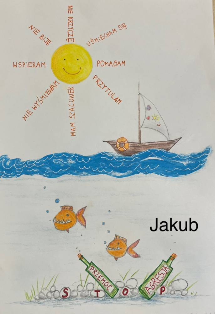 Nasi uczniowie z zaangażowaniem i kreatywnością podeszli do tematu, przygotowując piękne, pełne przesłania prace plastyczne. W swoich dziełach pokazali, że każdy z nas może mieć wpływ na eliminowanie przemocy, a dobro, przyjaźń i współpraca to wartości, które warto pielęgnować każdego dnia.