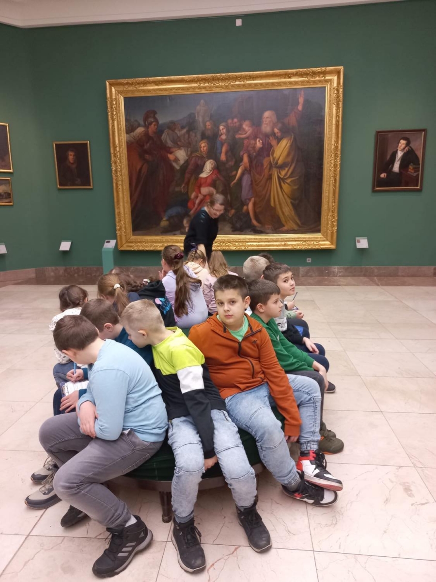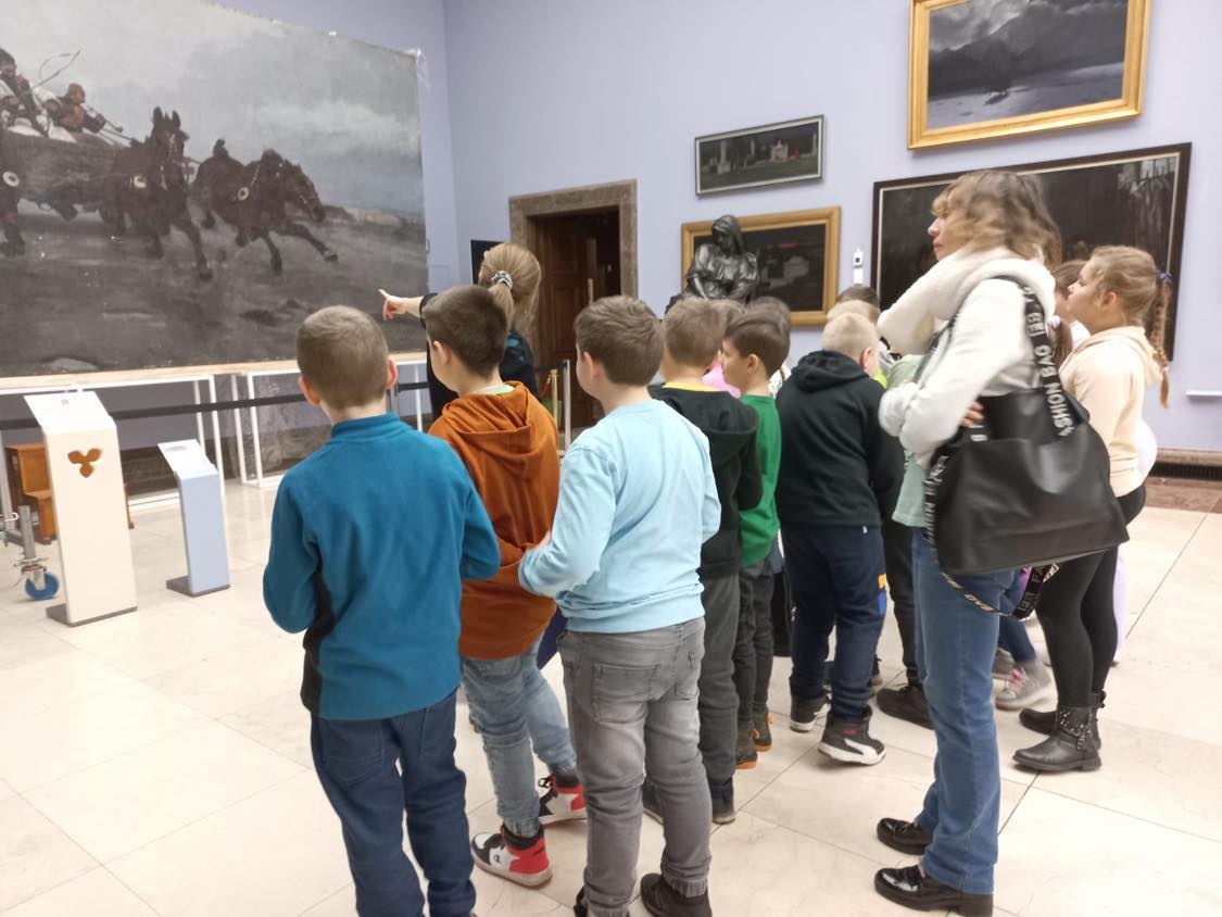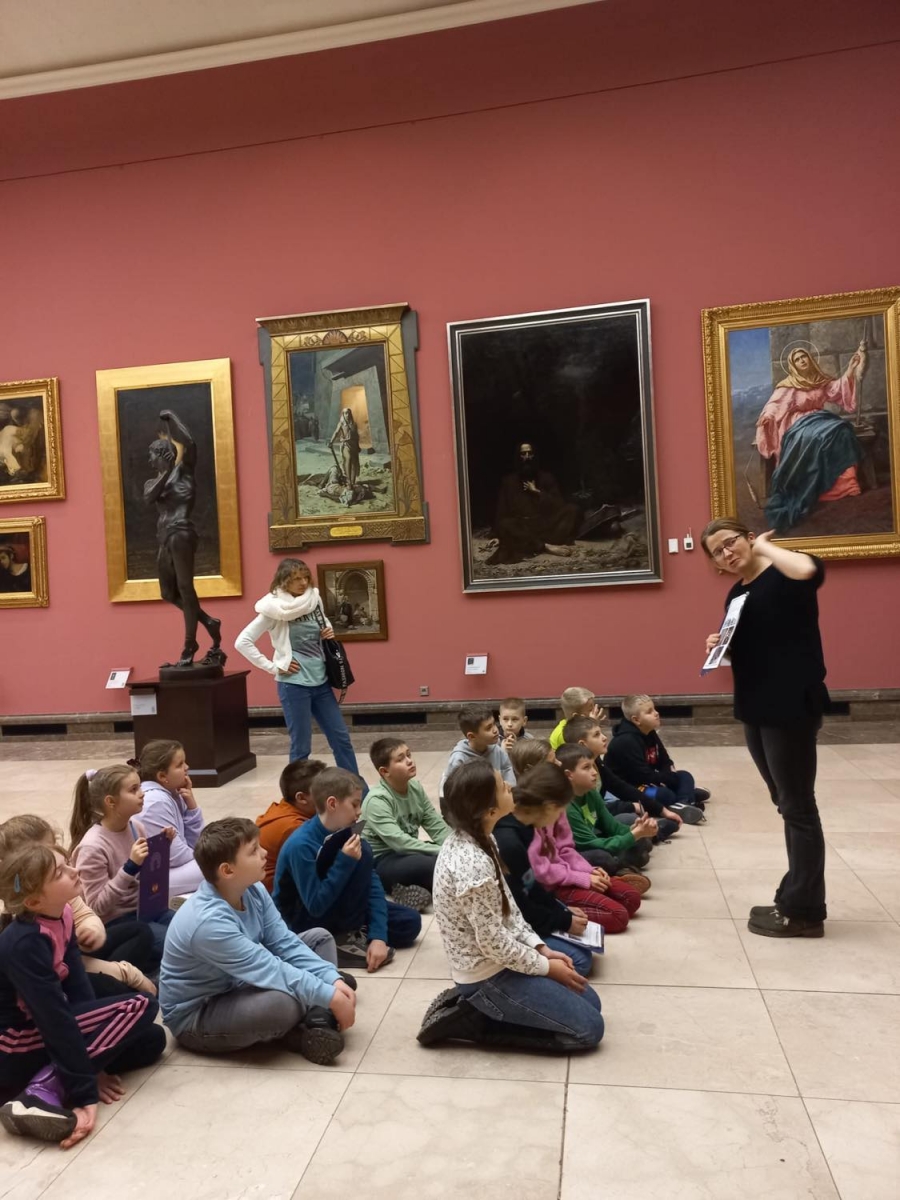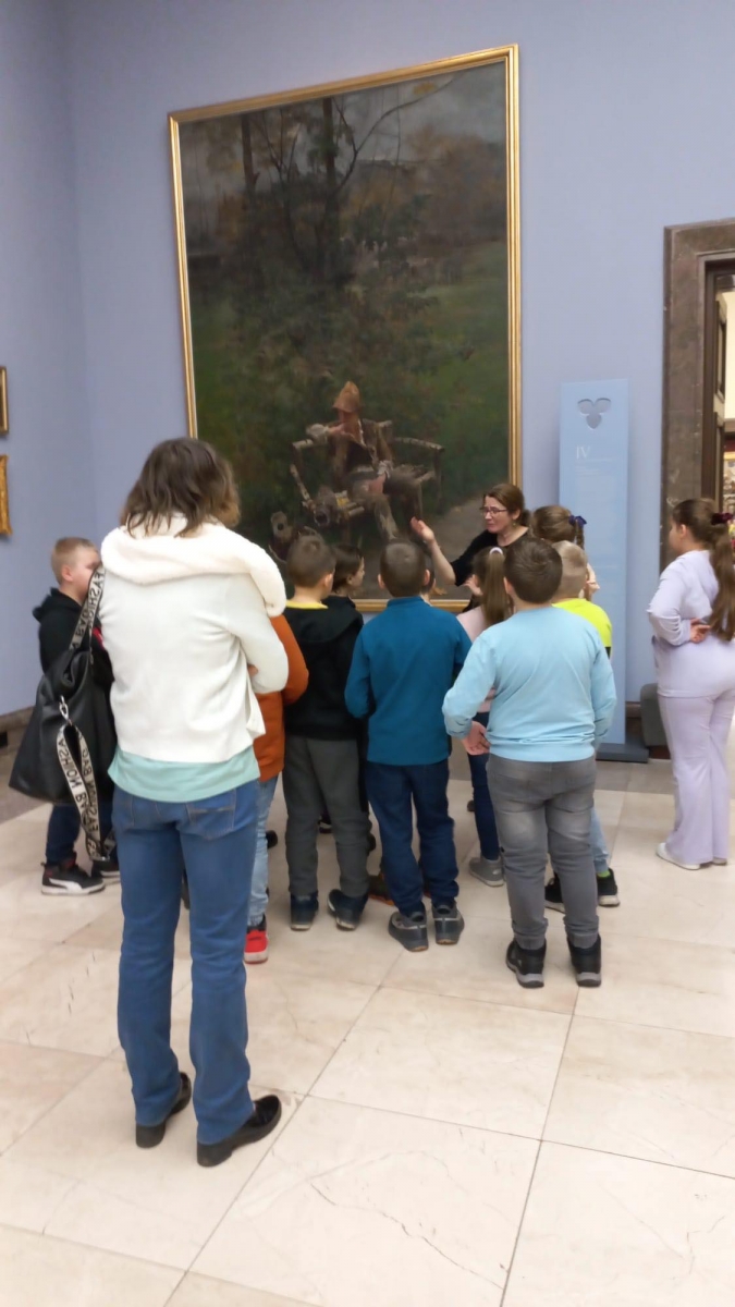Uczniowie, wędrując przez cztery sale: Bacciarellego, Michałowskiego, Siemiradzkiego i Matejki, zapoznawali się z wybranymi dziełami malarskimi i rzeźbami. Dzieci musiały wykazać się większą aktywnością odbioru niż tylko podziwianie dzieł sztuki, gdyż wykonywały również różne zadania, m.in. odszyfrowywały tytuły obrazów, wyszukiwały na nich wskazane elementy, uzupełniały karty pracy, które otrzymały od pani przewodniczki.