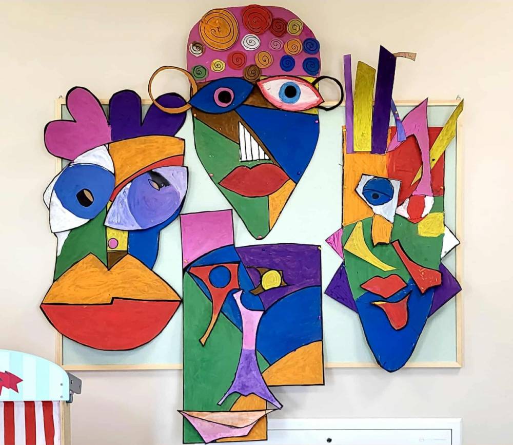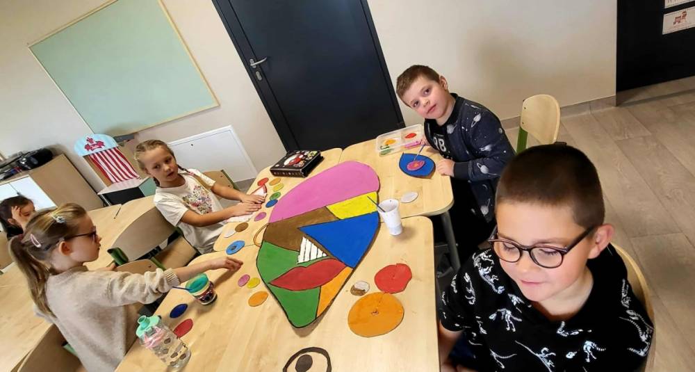 Zainspirowani sztuką Picassa, uczniowie pracowali w grupach, tworząc portrety kubistyczne. Powstały oryginalne, pełne ekspresji prace, które pokazują, jak twórczo i odważnie potrafią myśleć najmłodsi artyści.