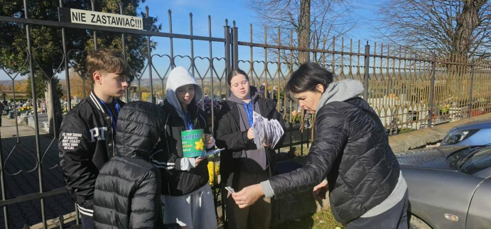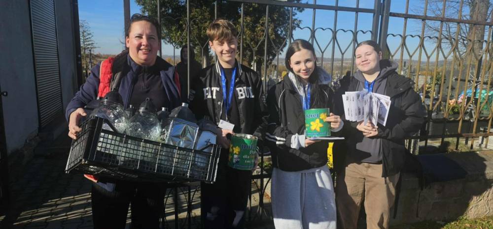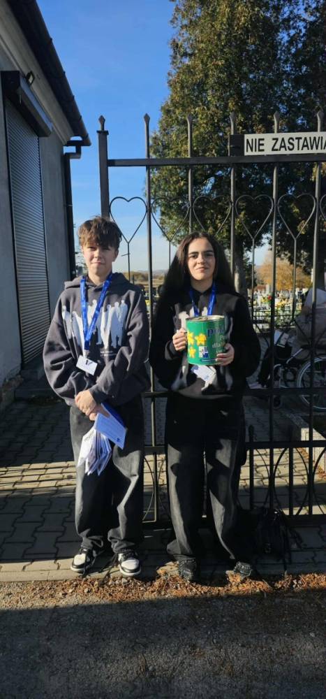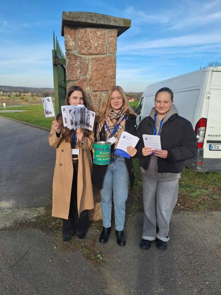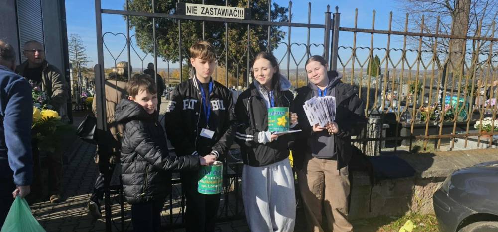 Uczniowie naszej szkoły wzięli udział w kweście na Cmentarzu Parafialnym w Liszkach na rzecz Hospicjum św. Łazarza w Krakowie. Wolontariusze z zaangażowaniem zbierali datki, wspierając w ten sposób podopiecznych hospicjum. Akcja miała nie tylko wymiar charytatywny, ale także wychowawczy – młodzież mogła doświadczyć, jak ważna jest empatia i pomoc potrzebującym. Dzięki hojności odwiedzających cmentarz udało się zebrać znaczną kwotę, która zostanie przekazana na potrzeby hospicjum.
