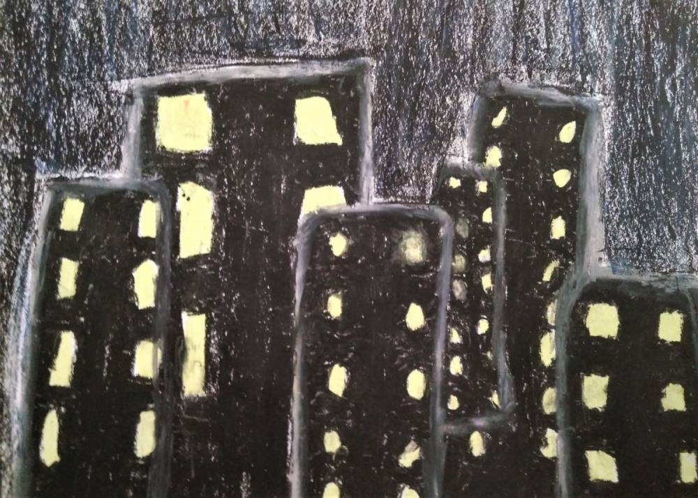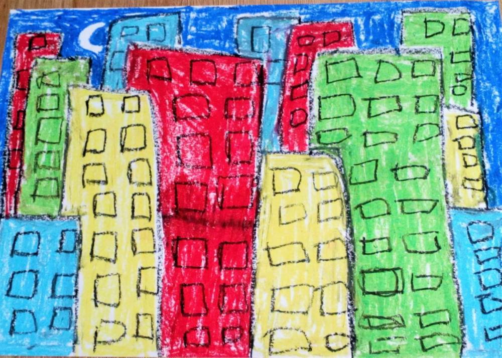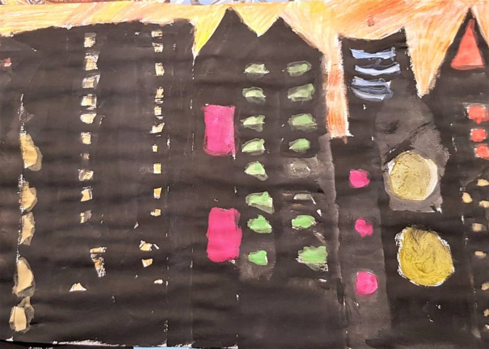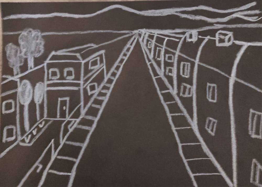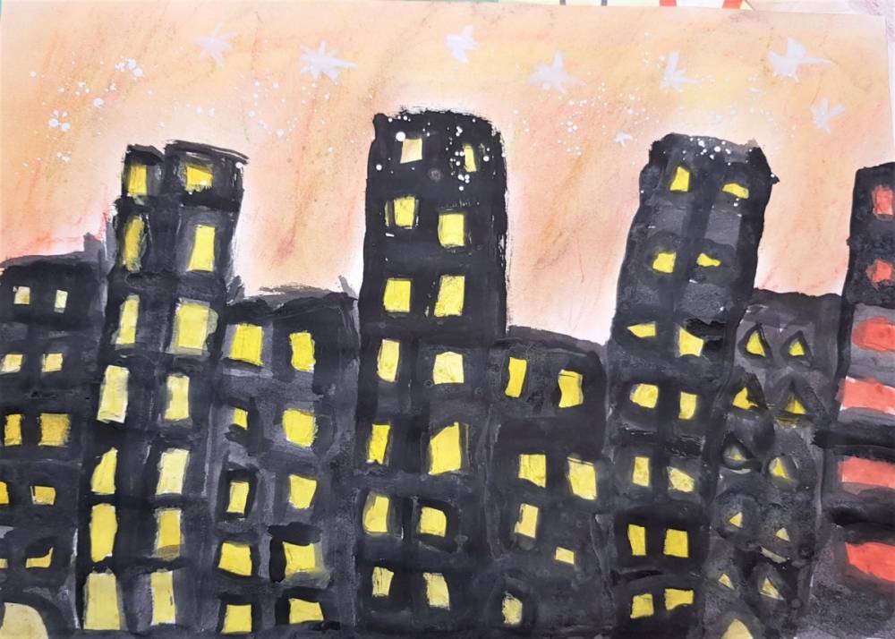 Perspektywa kulisowa jest to rozmieszczenie obiektów na płaszczyźnie obrazu, w którym elementy dalsze są częściowo zakryte przez obiekty bliższe. Dzięki temu powstaje wrażenie przestrzeni. Uczniowie z klasy VI na lekcji plastyki z zastosowaniem zasad tej perspektywy tak przedstawili „Miasto nocą”.