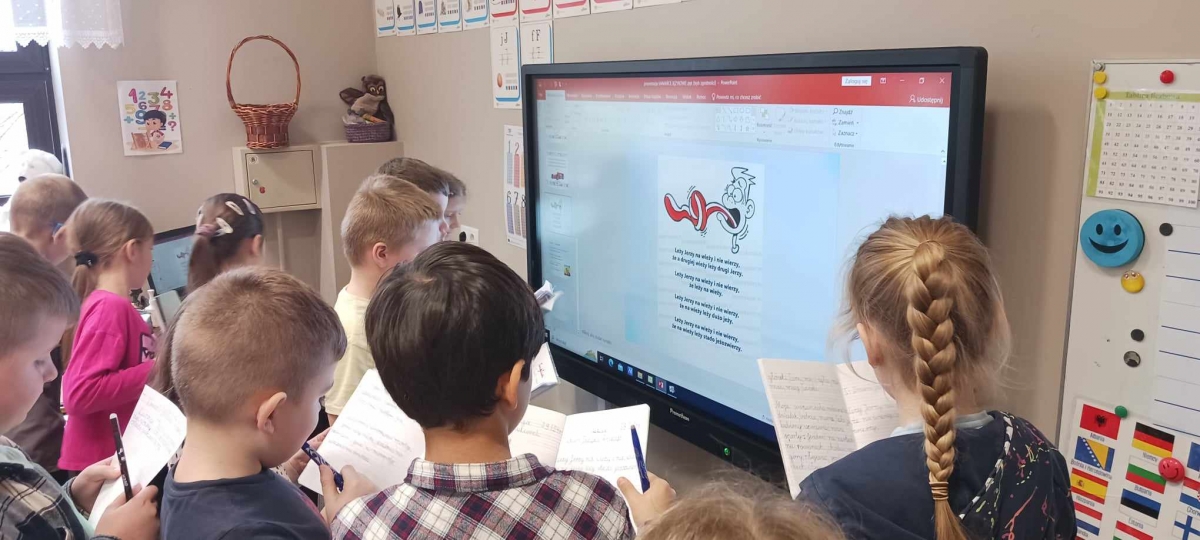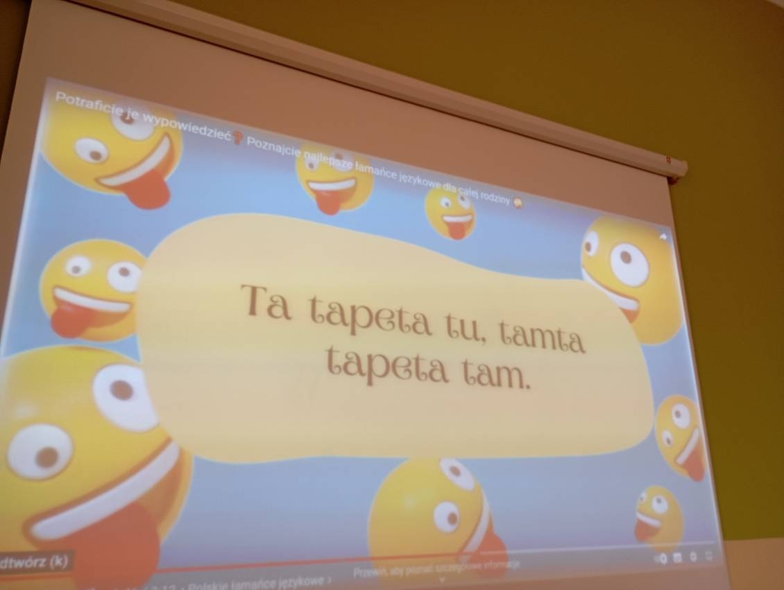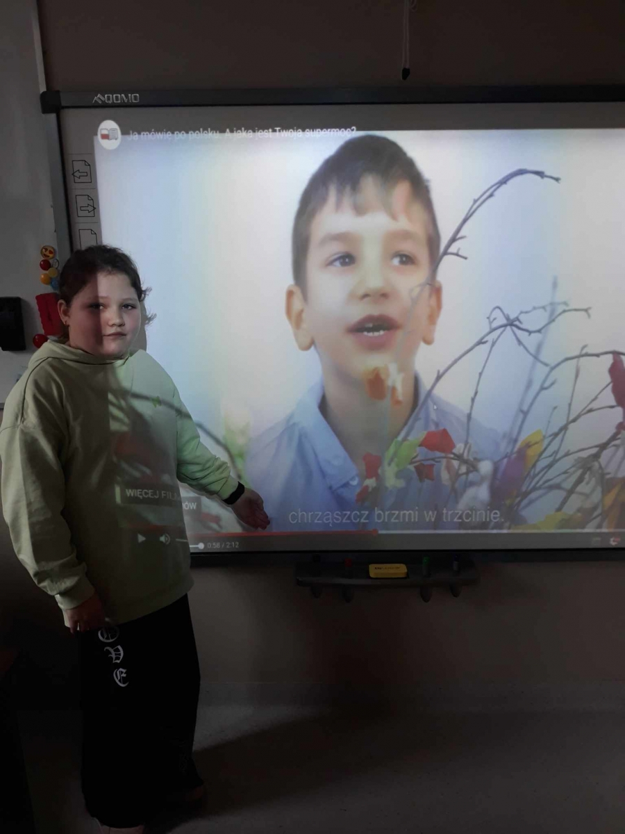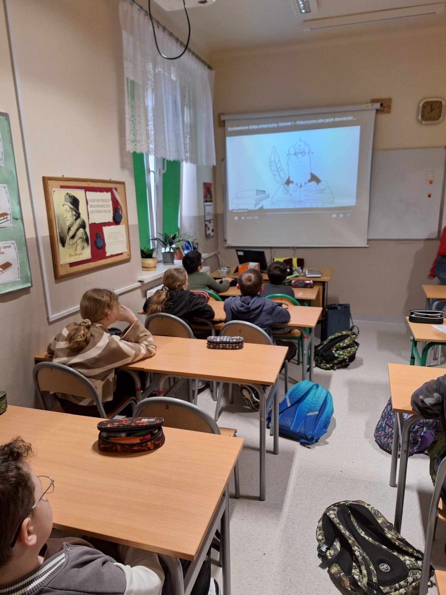 Uczniowie oglądali materiały z kampanii społecznych dotyczących języka polskiego „Ojczysty- dodaj do ulubionych” i „Język polski ą-ę”, a także poznali „Błyskawiczne dzieje polszczyzny” , poćwiczyli wymowę łamańców językowych, pisanie ortograficzne, a starsza młodzież dowiedziała się, jak unikać błędów językowych, a także ćwiczyła bogactwo słownictwa.