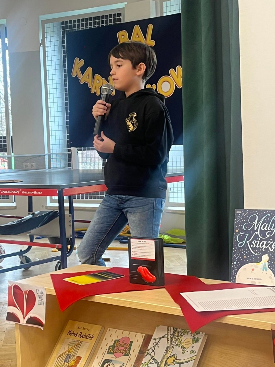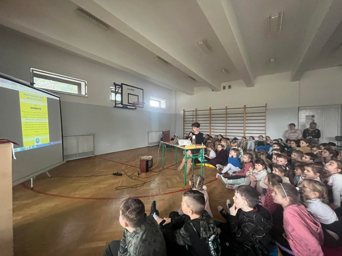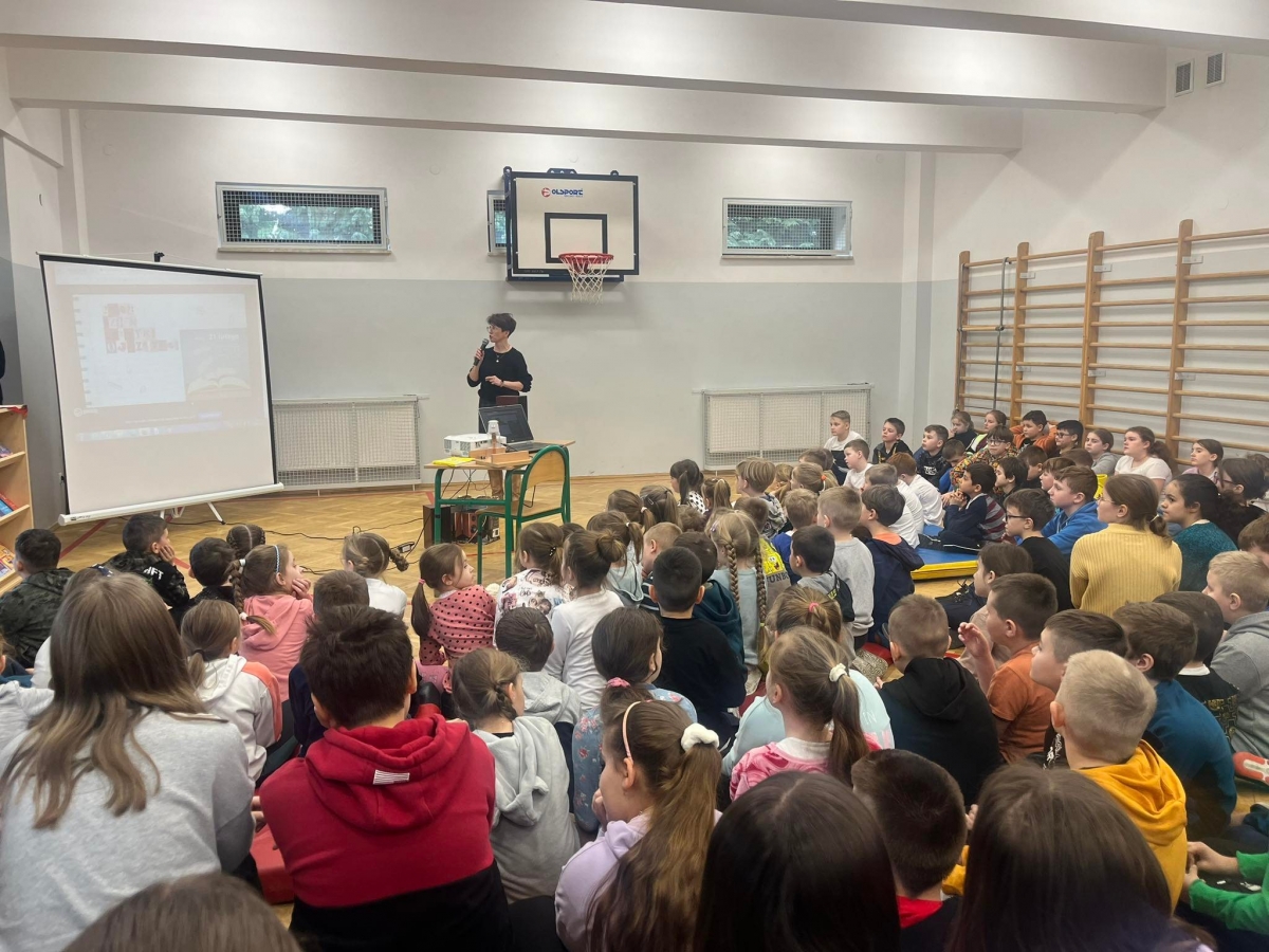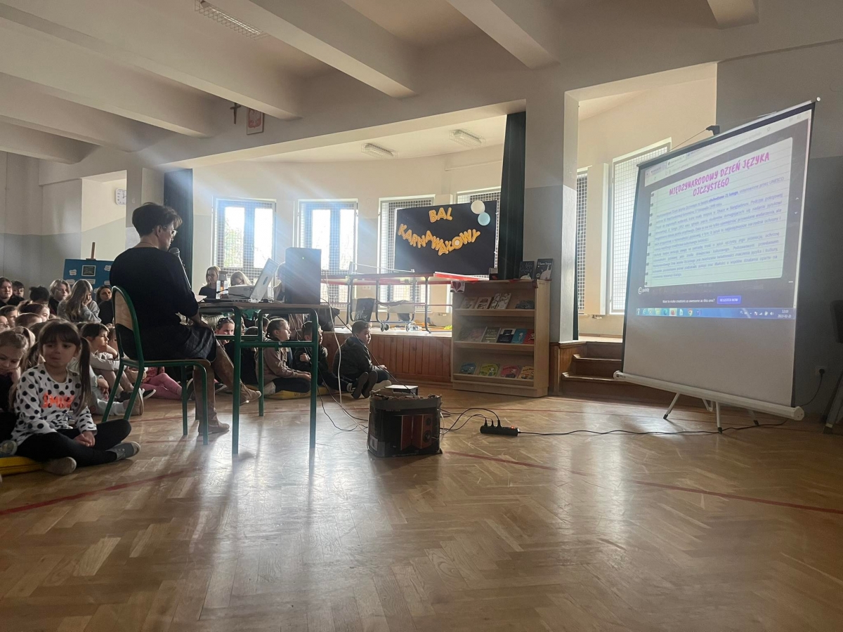 Zgromadzeni na sali uczniowie dowiedzieli się, ilu jest użytkowników języka polskiego, dlaczego nasz alfabet jest wyjątkowy, a także jak brzmiało pierwsze zdanie w języku ojczystym. Była chwila gimnastyki dla języka z łamańcami, a także ciekawostka – prezentacja, w której obrazki podpisane były słowami gwarowymi. Rozwinięciem tematu była historia o Kubusiu Puchatku w nowej, właśnie gwarowej odsłonie. Okazało się, że znana wszystkim opowieść brzmi zupełnie odmiennie.