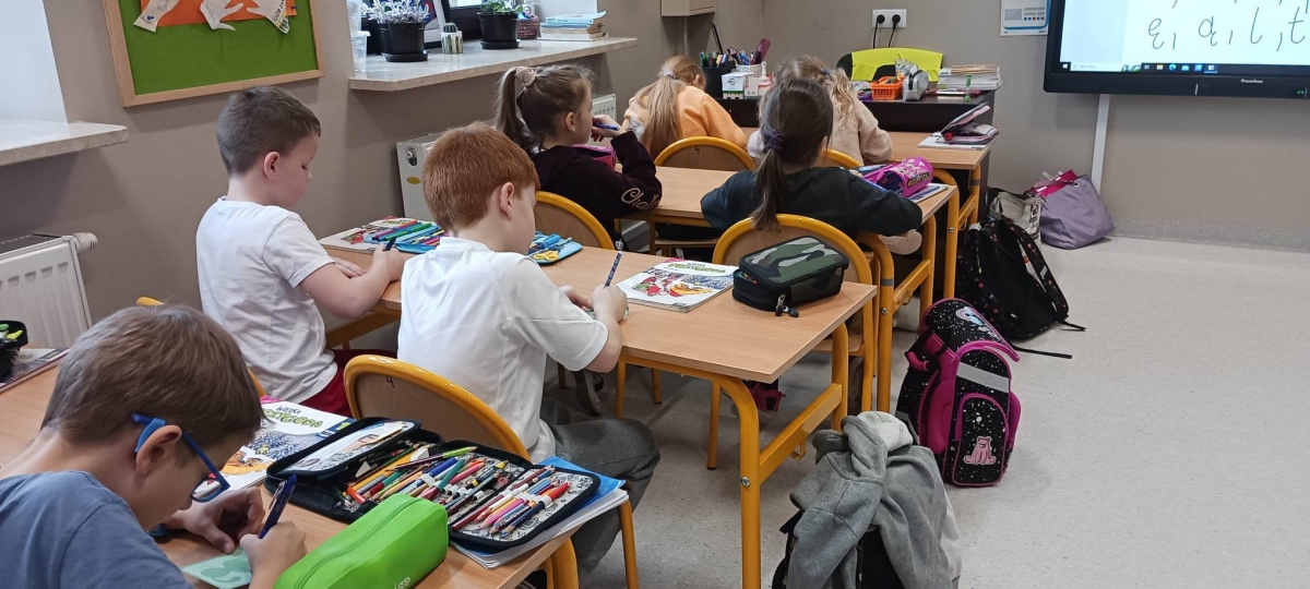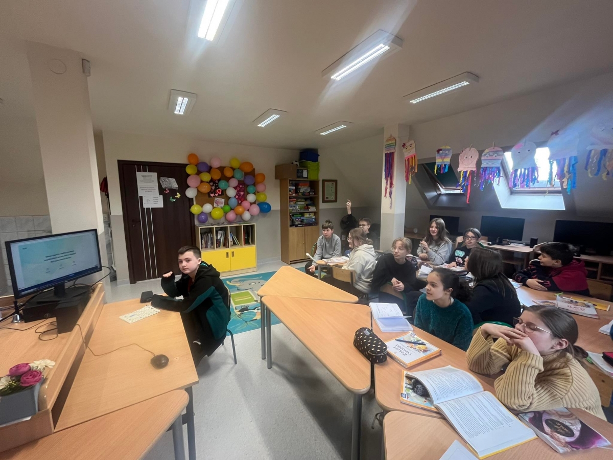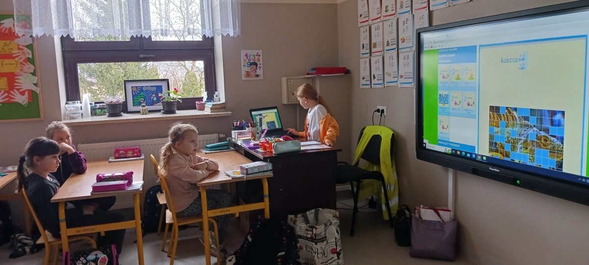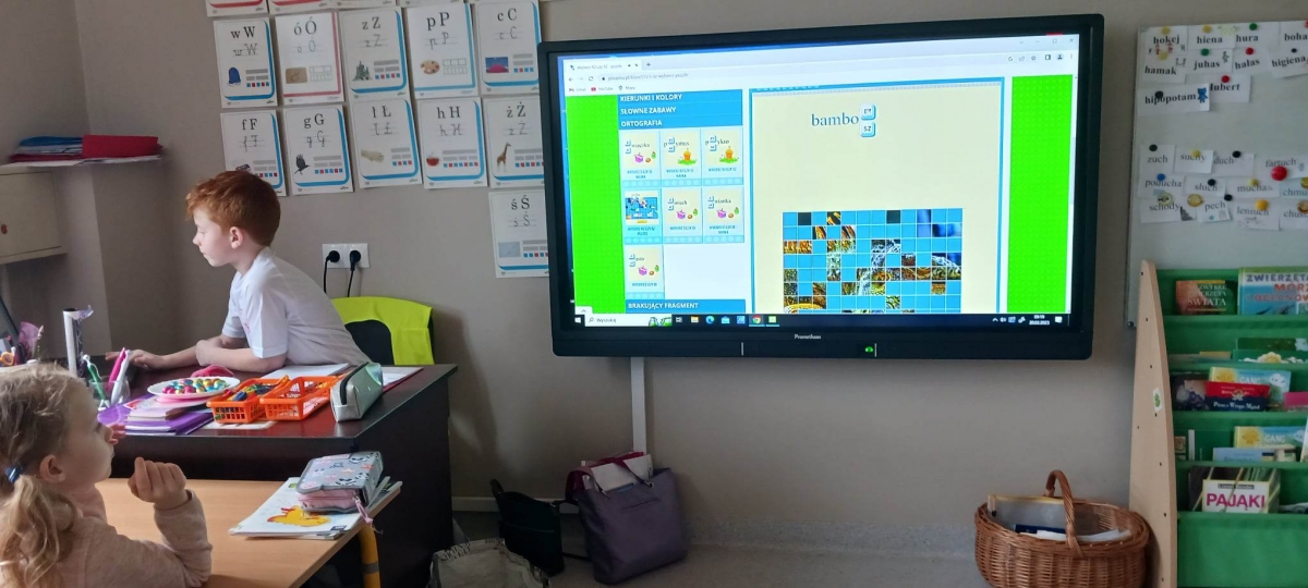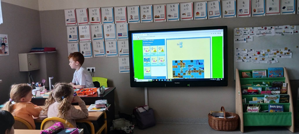 W czasie zajęć lekcyjnych zarówno starsi, jak i młodsi uczniowie wykonywali różnorodne ćwiczenia i quizy.