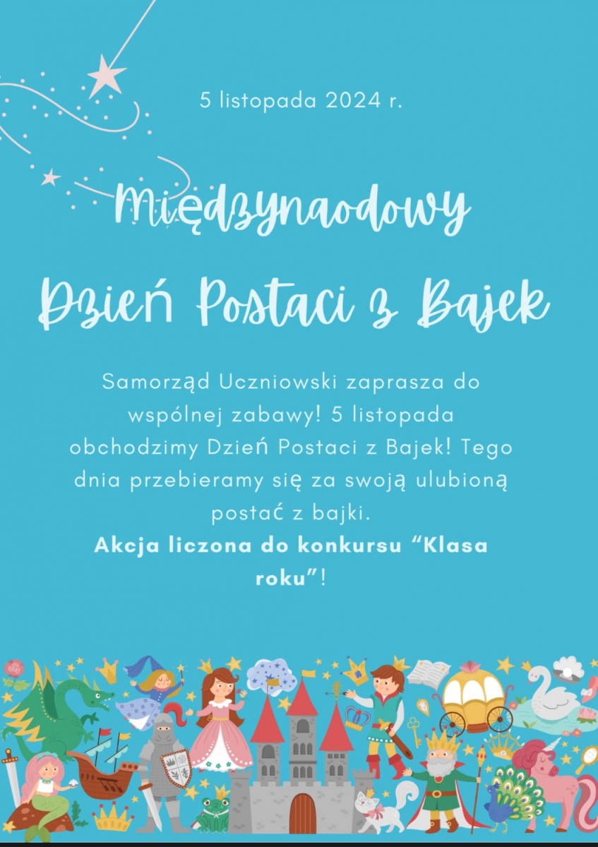 Międzynarodowy Dzień Postaci z Bajek - akcja Samorządu Uczniowskiego! Zapraszamy do zabawy!