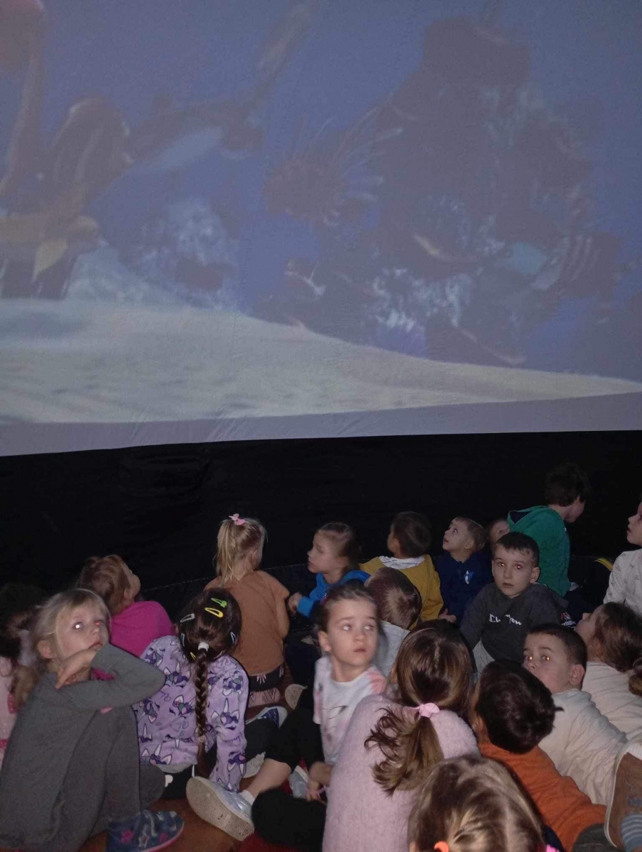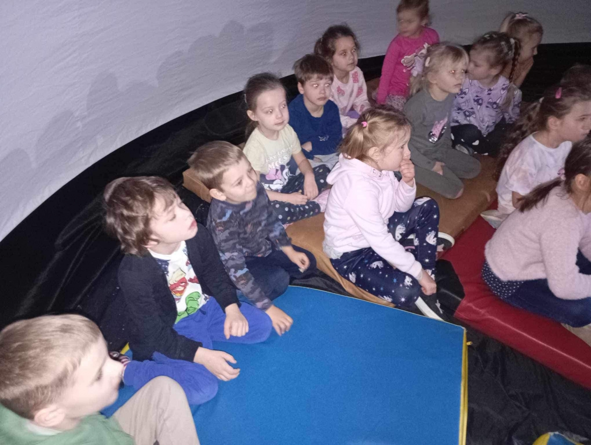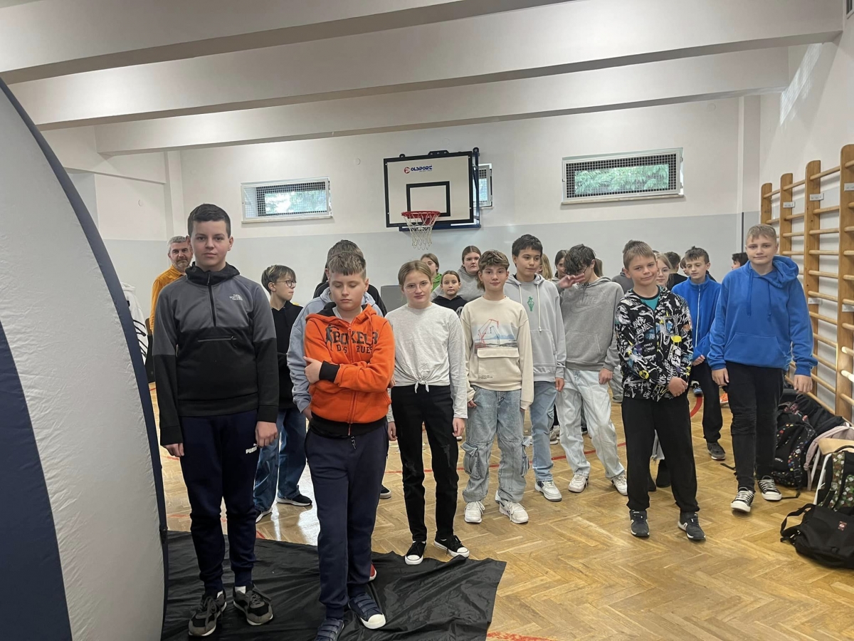 Projekcje w specjalnej kopule w fascynujący sposób wprowadziły uczniów w świat astronomii i kosmosu.