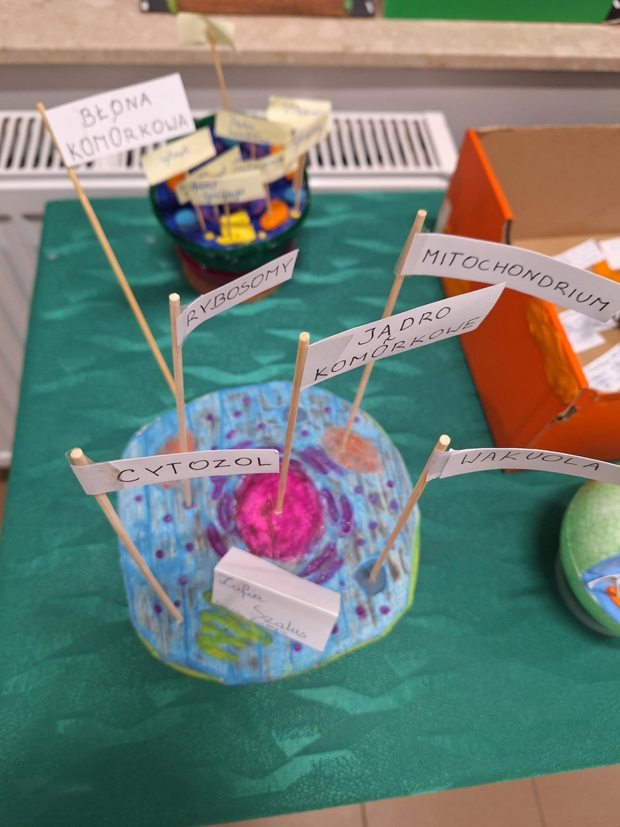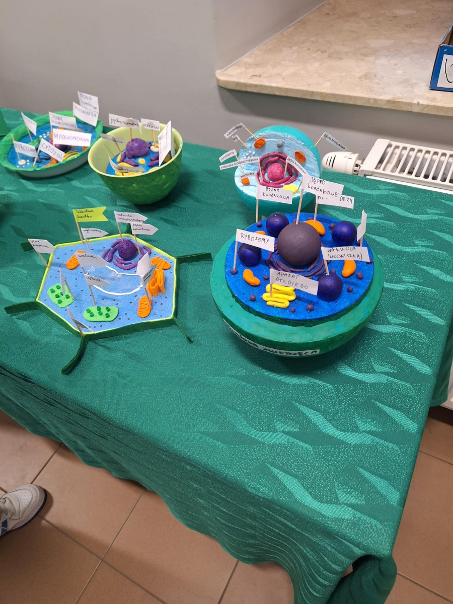 Powstały wspaniałe projekty uczniowskie wykonane z różnych materiałów: masy solnej, styropianu, bibuły, filcu, plasteliny oraz z drewna. Samodzielne, praktyczne wykonanie modelu przez ucznia pozwoliło na przyswojenie nazw struktur komórkowych w perfekcyjnym stopniu.