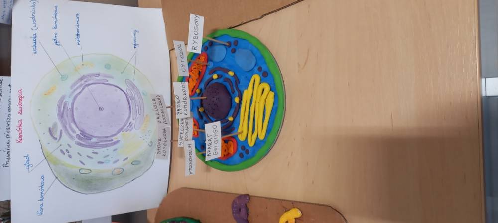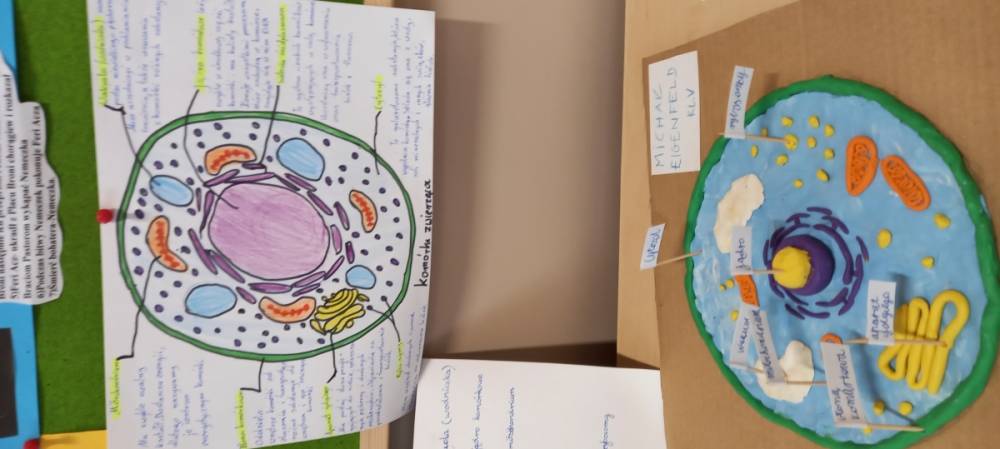 Uczniowie klasy piątej, w ramach tematów realizowanych na biologii wykonali modele komórki zwierzęcej i roślinnej. Powstały piękne, kolorowe i oryginalne prace, utworzone z różnorodnych materiałów np. z plasteliny, masy solnej, styropianu. Modele zawierały najważniejsze struktury występujące we wnętrzu komórki tj. jądro komórkowe, wakuole, rybosomy, mitochondria, błonę komórkową, aparat Golgiego, cytozol i siateczkę śródplazmatyczną. Wykonane modele komórek pomogły uczniom w zapamiętaniu i zrozumieniu ich budowy.