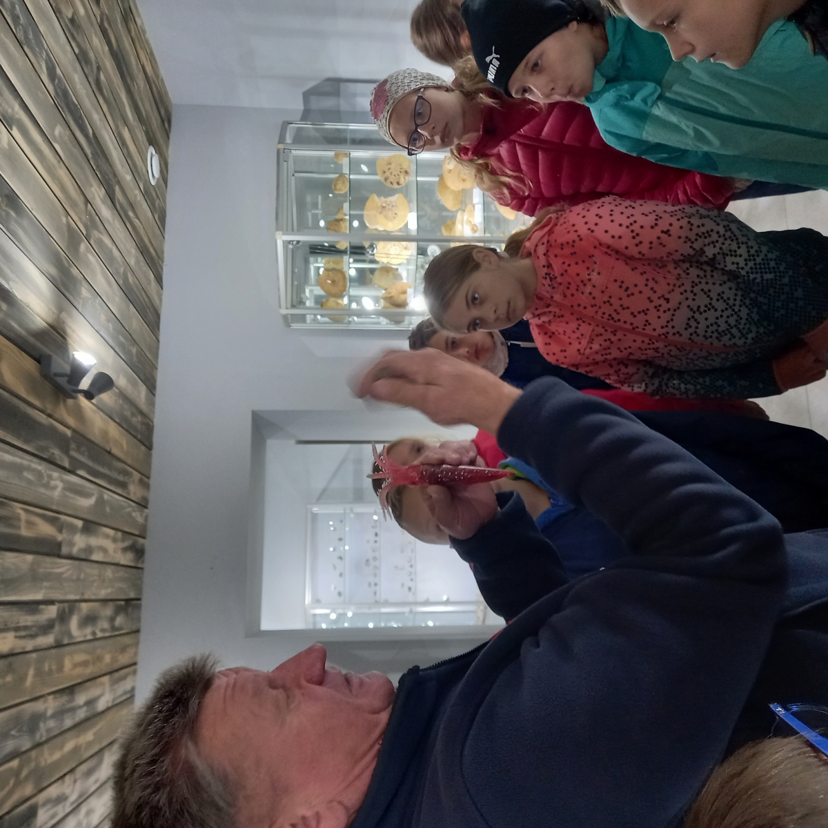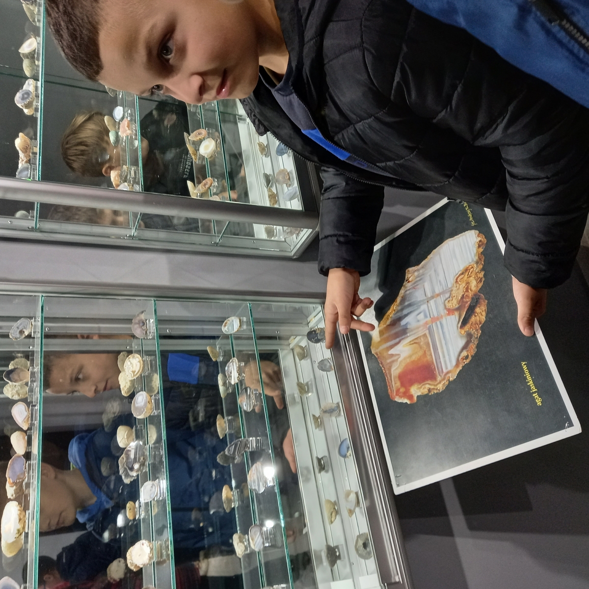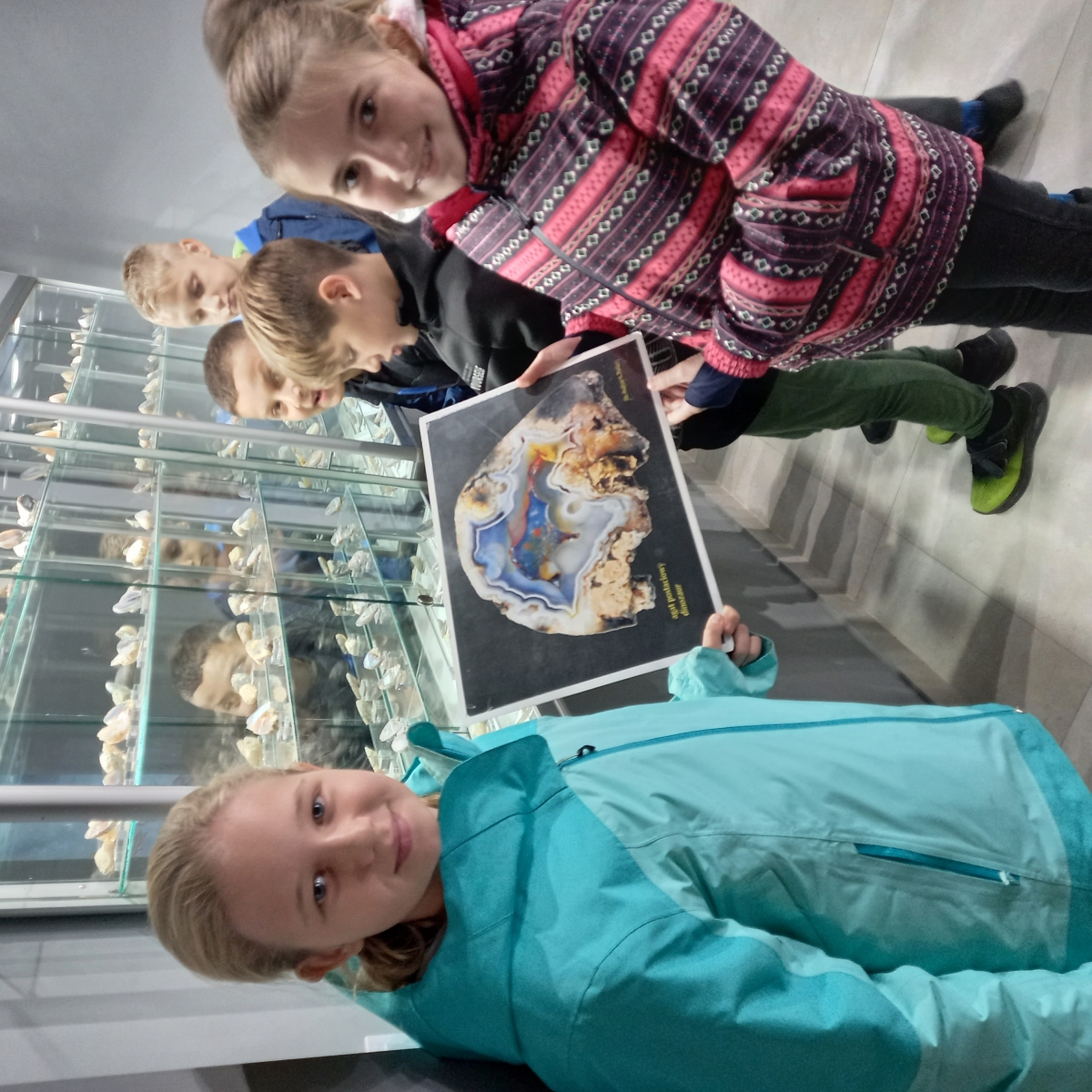 Potem nastąpiło zwiedzanie pokaźnej wystawy kamieni, na którą składają się agaty, kwarce, a także kalcyty. Następnie dzieci uczestniczyły w zabawach; rozpoznawanie kamieni szlachetnych, poszukiwania na czas kamieni i skał wulkanicznych zgromadzonych w muzeum.