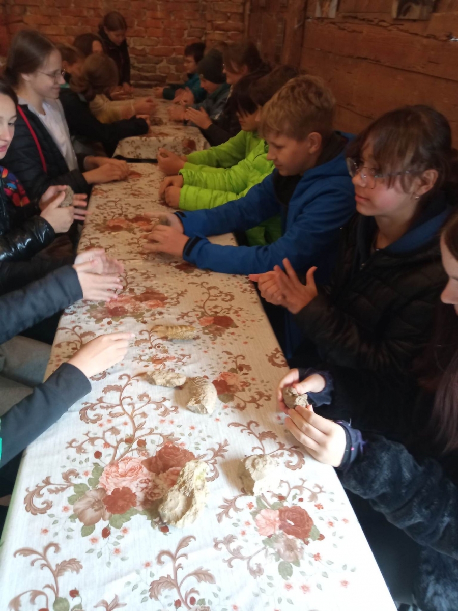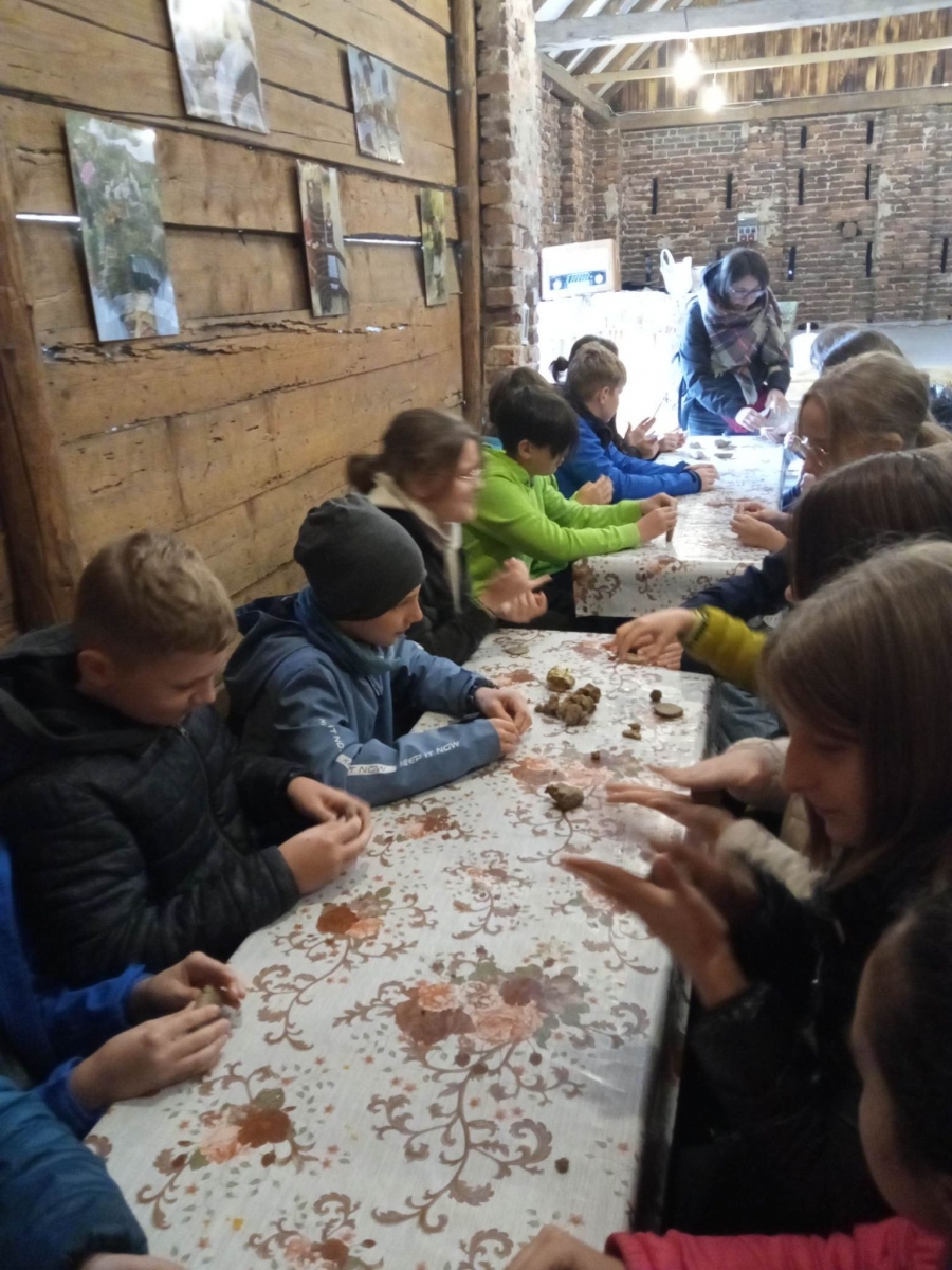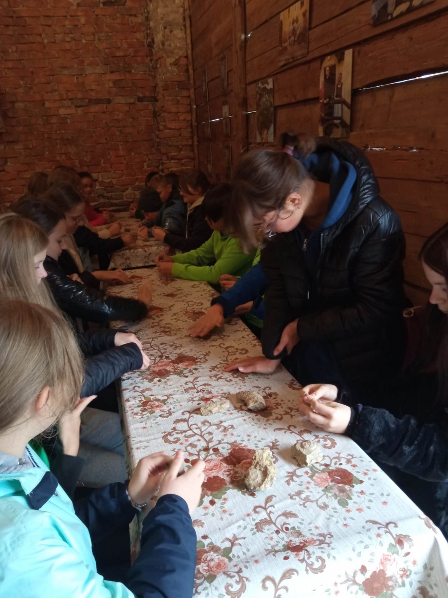 Kolejnym ciekawym punktem wycieczki były warsztaty lepienia z gliny, a także wizyta w pracowni agatów. Pan przewodnik pokazał, jak się przecina i poleruje te kamienie, wydobywając ich piękno. Kulminacyjnym punktem wycieczki było jednak wyjście na pole agatowe, gdzie każdy mógł sam poszukać pięknych okazów. W związku z tym, że wcześniej były opady deszczu naprawdę wiele jajeczek agatowych udało się znaleźć!!!