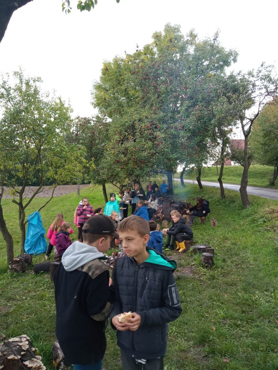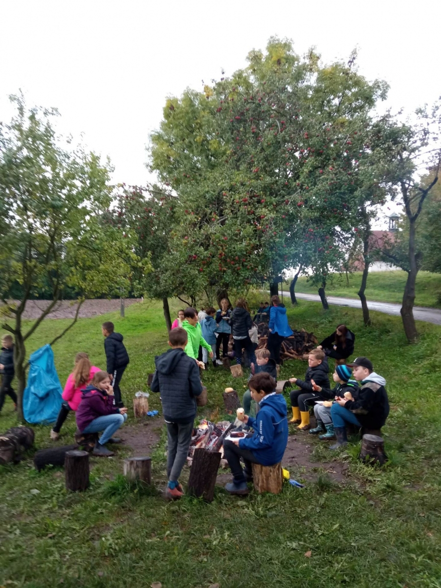 Zmęczeni szukaniem kamieni uczniowie mogli usiąść przy ognisku i upiec kiełbaskę, która w przepięknych okolicznościach przyrody smakowała wyjątkowo.
