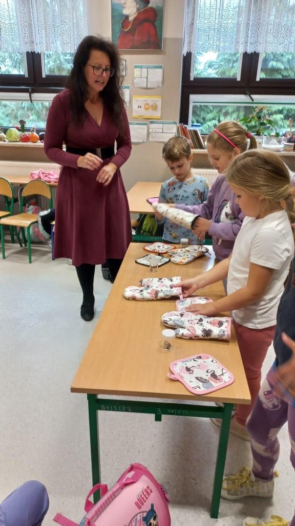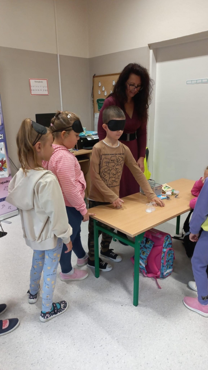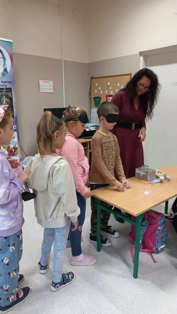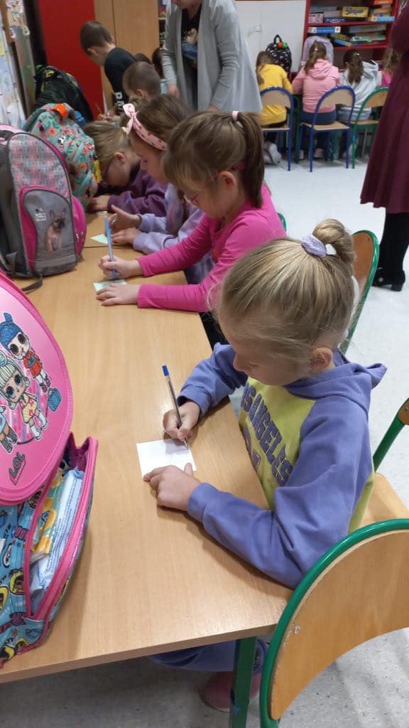 Pisarka spotkała się z uczniami kl. 1 i z Mądrymi Sówkami z oddziału przedszkolnego w naszej szkole. Dzieci dowiedziały się, jak powstaje książka dla dzieci, kim są pisarz, ilustrator i redaktor. Uczestniczyły też aktywnie w warsztatach dotyczących niepełnosprawności. Poprzez różne ćwiczenia praktyczne przekonały się, że niepełnosprawność wiąże się z wieloma utrudnieniami w wykonywaniu codziennych czynności.