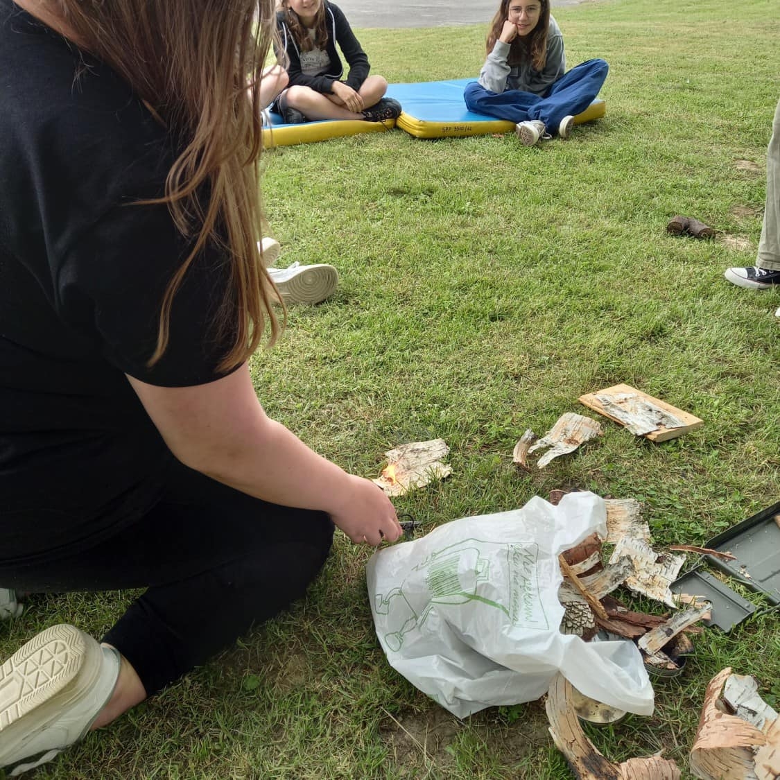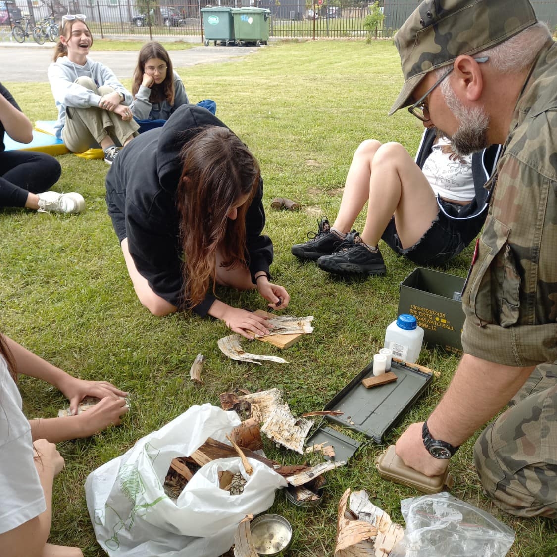 W piątek uczniowie klasy ósmej uczestniczyli w lekcji EDB w inny, niecodzienny sposób. Zajęcia zostały przeprowadzone przez Krakowską Drużynę Orląt im. A. Petrykiewicza . Podczas lekcji uczniowie poznali podstawowe zasady syrvivalu - dowiedzieli się w jaki sposób rozpalić ogień, samodzielnie próbowali rozpalić ogień mając do dyspozycji krzesiwo i korę brzozy.