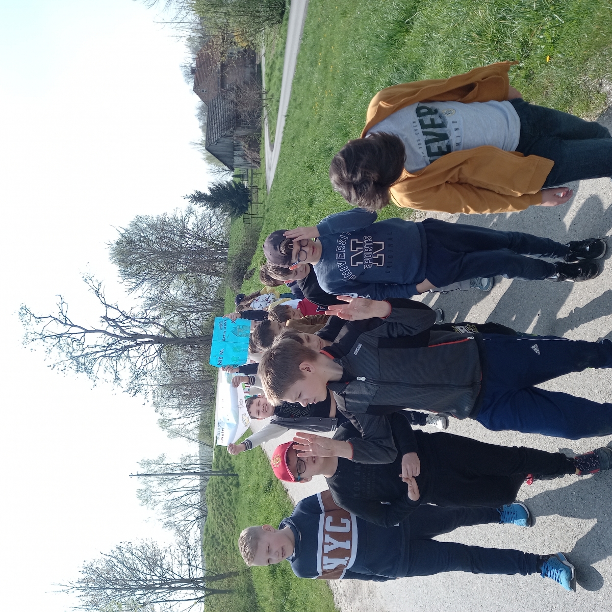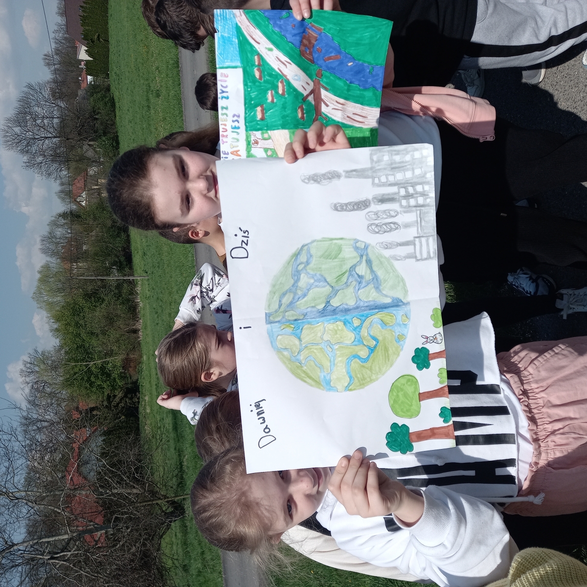 Punktem kulminacyjnym był ekologiczny happening. Uczniowie spacerując po okolicach szkoły prezentowali plakaty i głosili hasła ekologiczne zachęcając do ochrony naszej Ziemi.