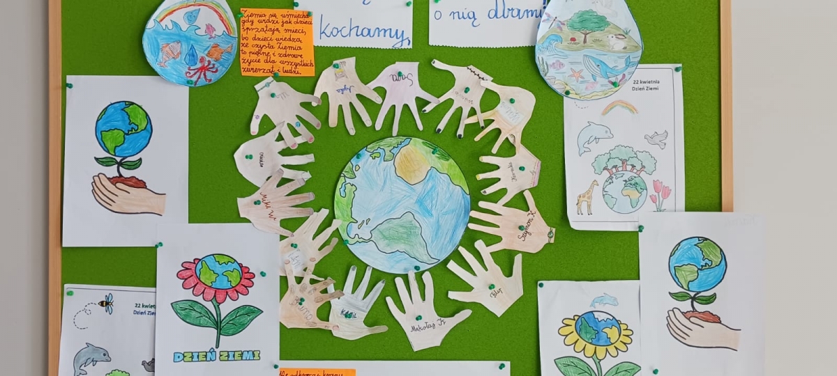 W naszej szkole Dzień Ziemi obchodziliśmy cały tydzień. Najpierw uczniowie obejrzeli prezentację, podczas której dowiedzieli się, jakie nasza planeta ma dla nas piękne dary oraz co ją zatruwa i niszczy.